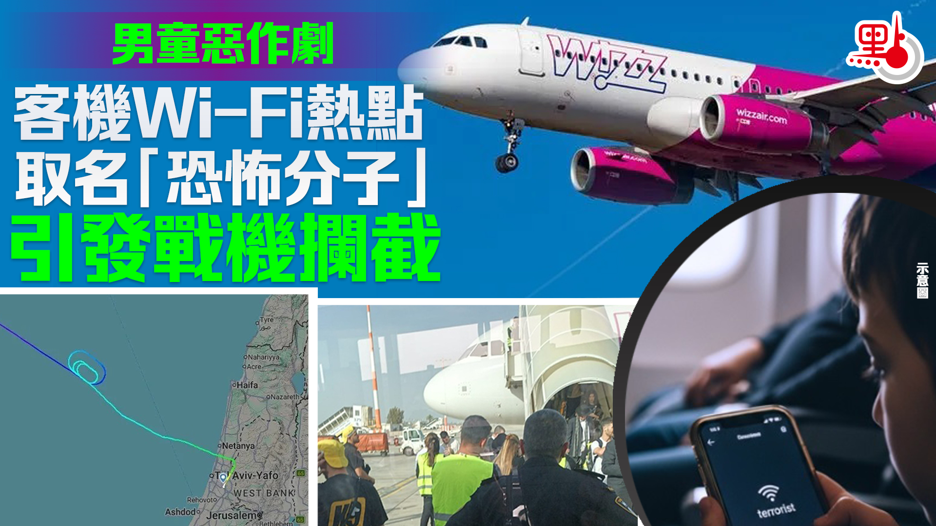 【點新聞報道】一架由英國倫敦飛往以色列特拉維夫的維茲航空(Wizz Air)客機,日前因機上一個Wi-Fi熱點名稱引發安全警報,以色列戰機緊急升空攔截護航,航班最終平安降落。經調查後發現,是一名男童將父母手機的Wi-Fi熱點名稱,改為阿拉伯文「恐怖分子」的惡作劇。