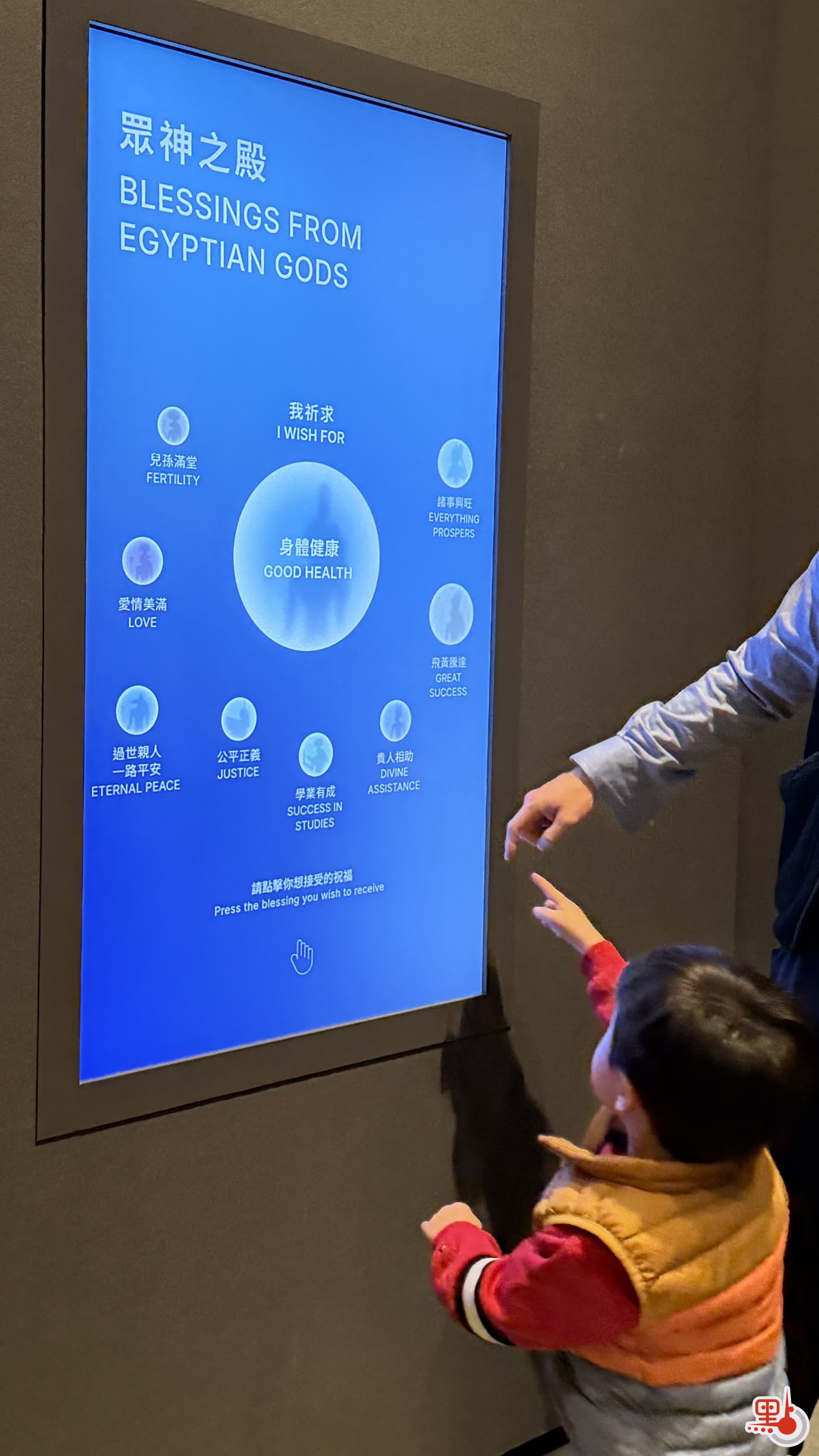 人氣爆棚的「古埃及文明大展」已錄得逾22萬訪客。古埃及新年約在尼羅河即將氾濫的6月末,館方展出的相關慶典文物,正與中國農曆新年交相輝映。相關文物包括繪有女神伊西斯的手鼓鼓面,作為打擊樂器為叉鈴和門納特項鍊,刻有古埃及節慶曆法的圖特摩斯三世供奉石碑刻,重現古埃及人以音樂與供奉祈求豐饒的儀式。現場更設有互動裝置,讓觀眾接收來自古埃及神明的祝福。