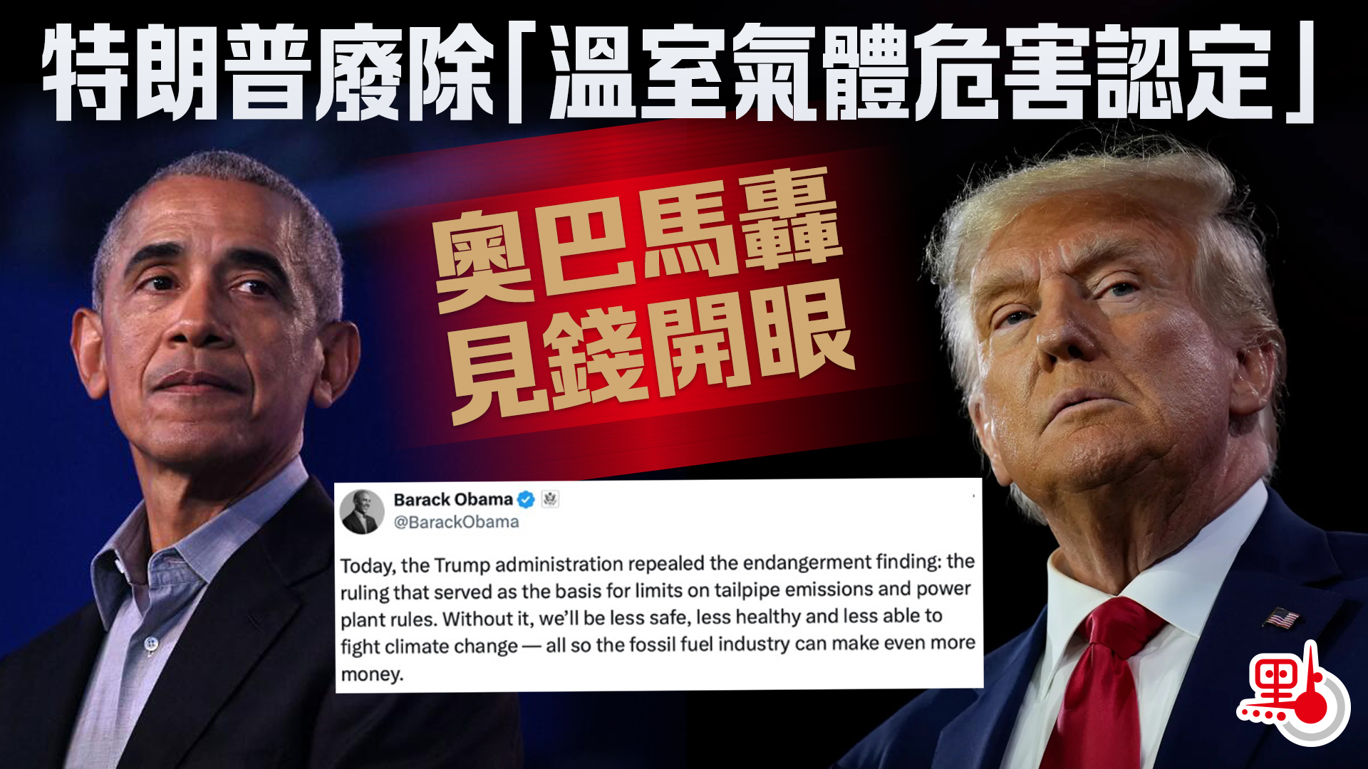特朗普廢除「溫室氣體危害認定」 奧巴馬轟見錢開眼