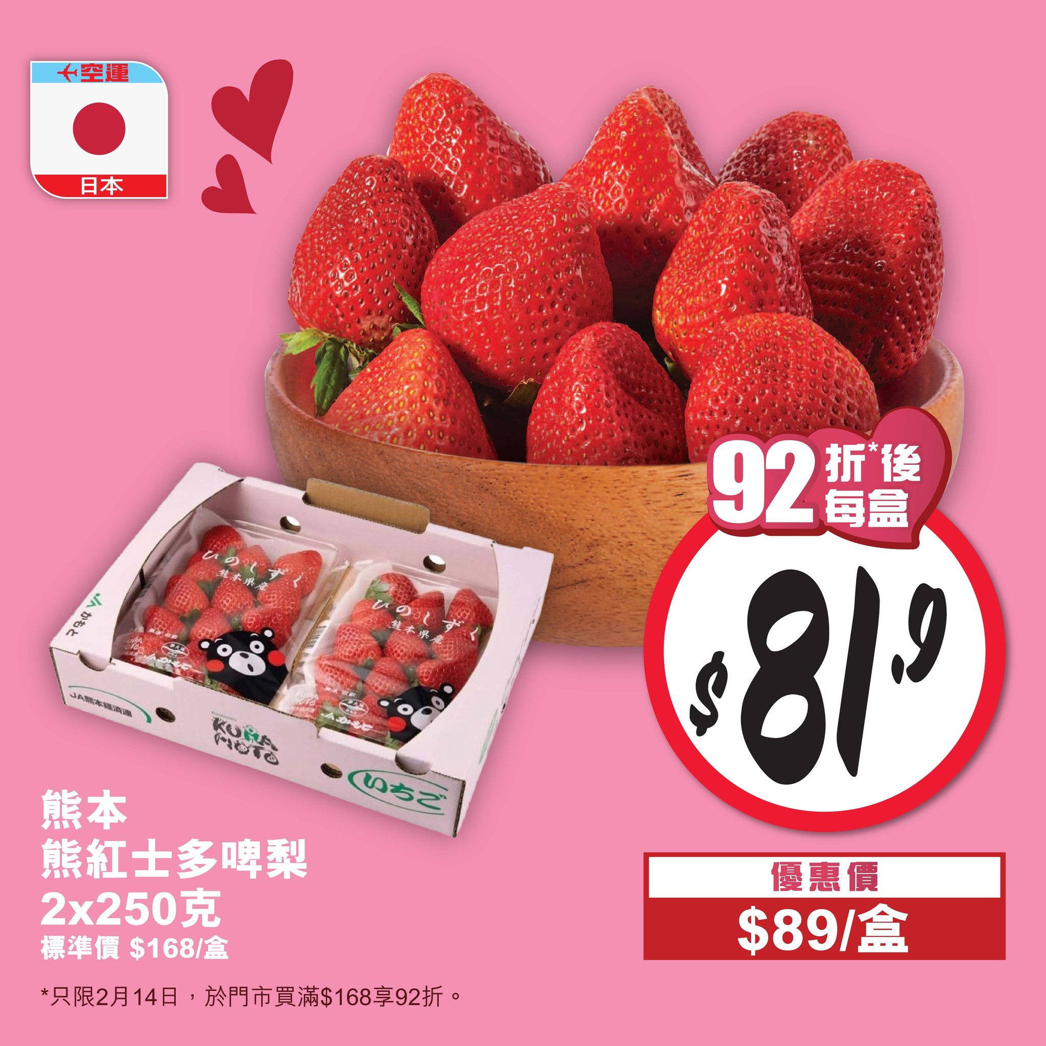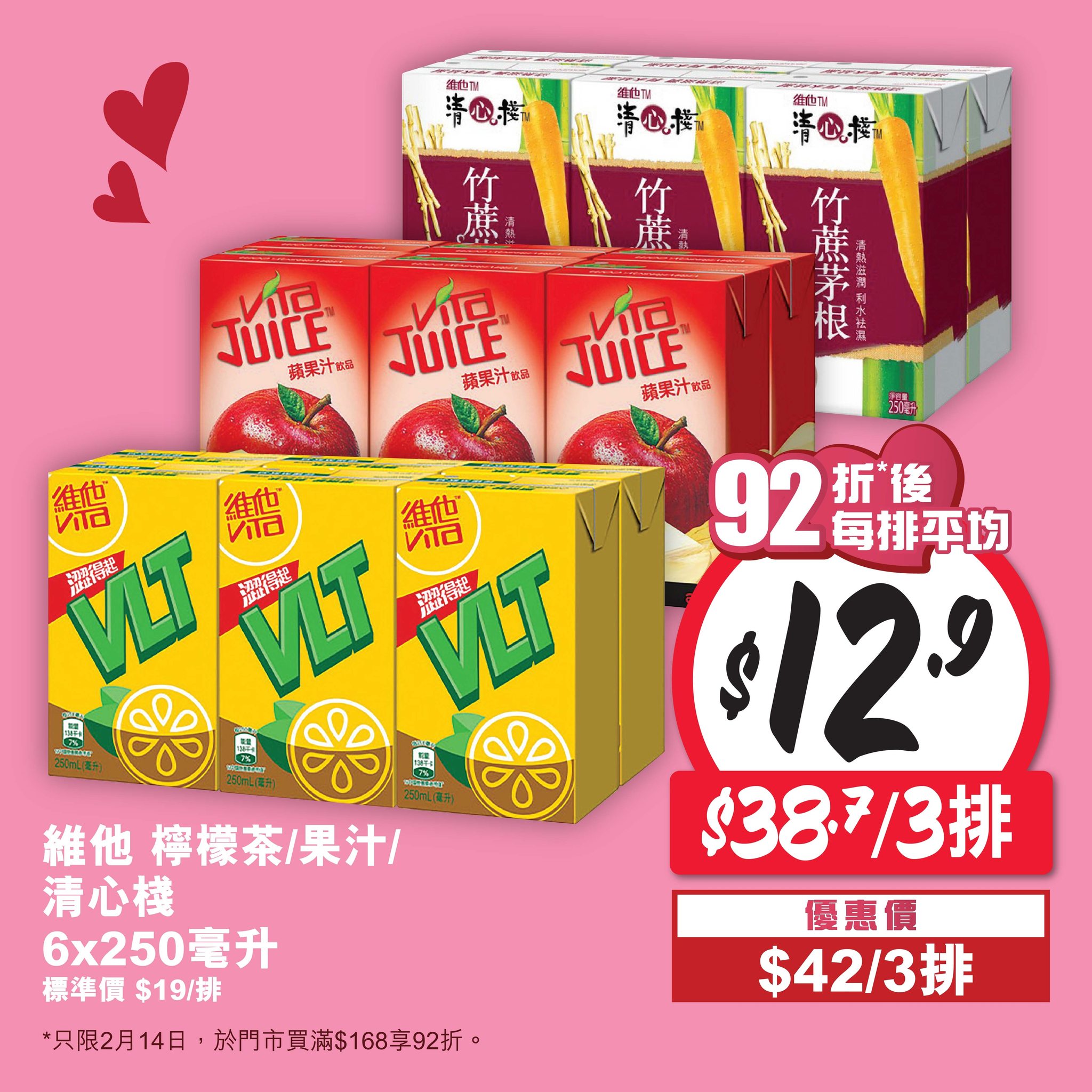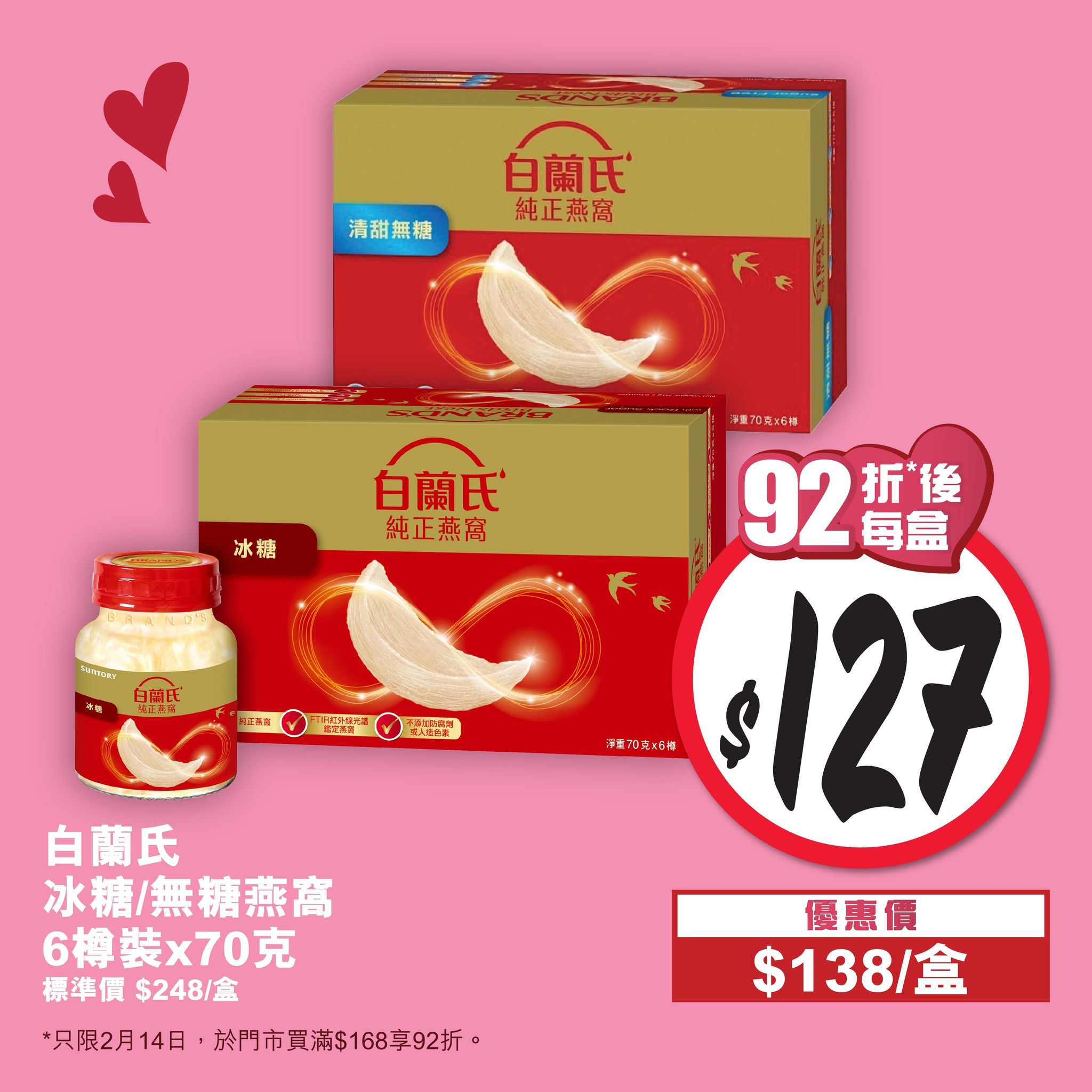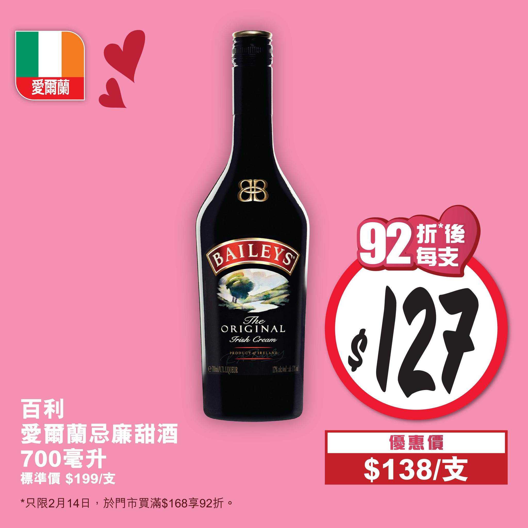惠康情人節限定折扣 今買滿$168全單92折
