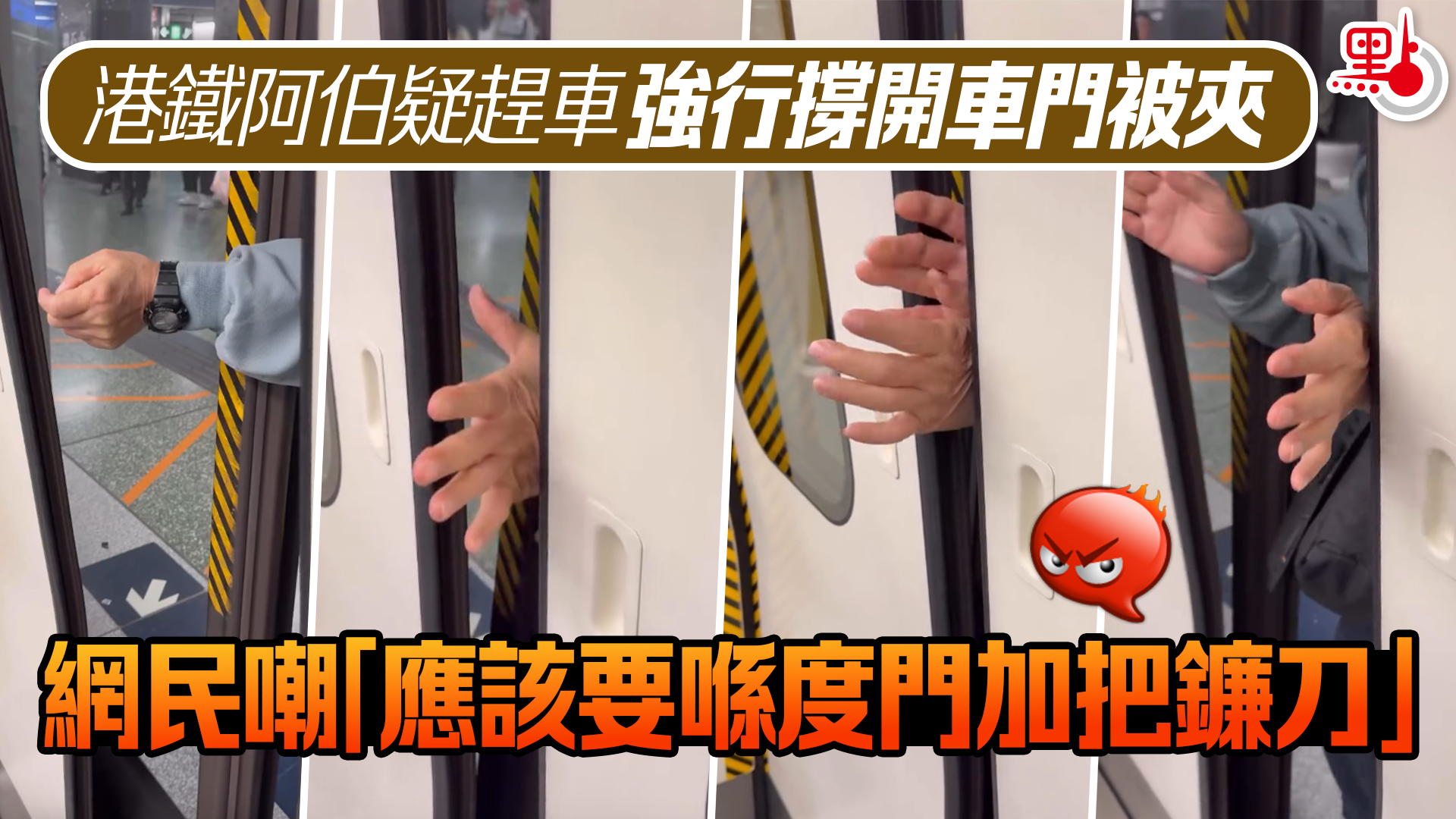 港鐵阿伯疑趕車強行撐開車門被夾 網民嘲「應該要喺度門加把鐮刀」