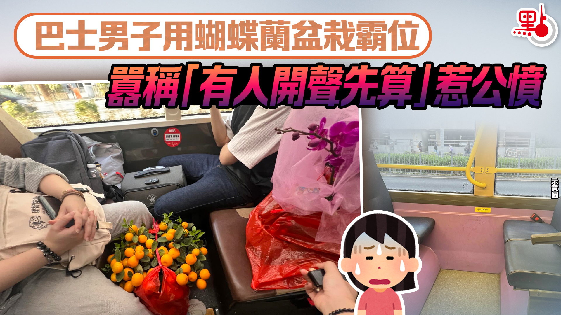 巴士男子用蝴蝶蘭盆栽霸位 囂稱「有人開聲先算」惹公憤