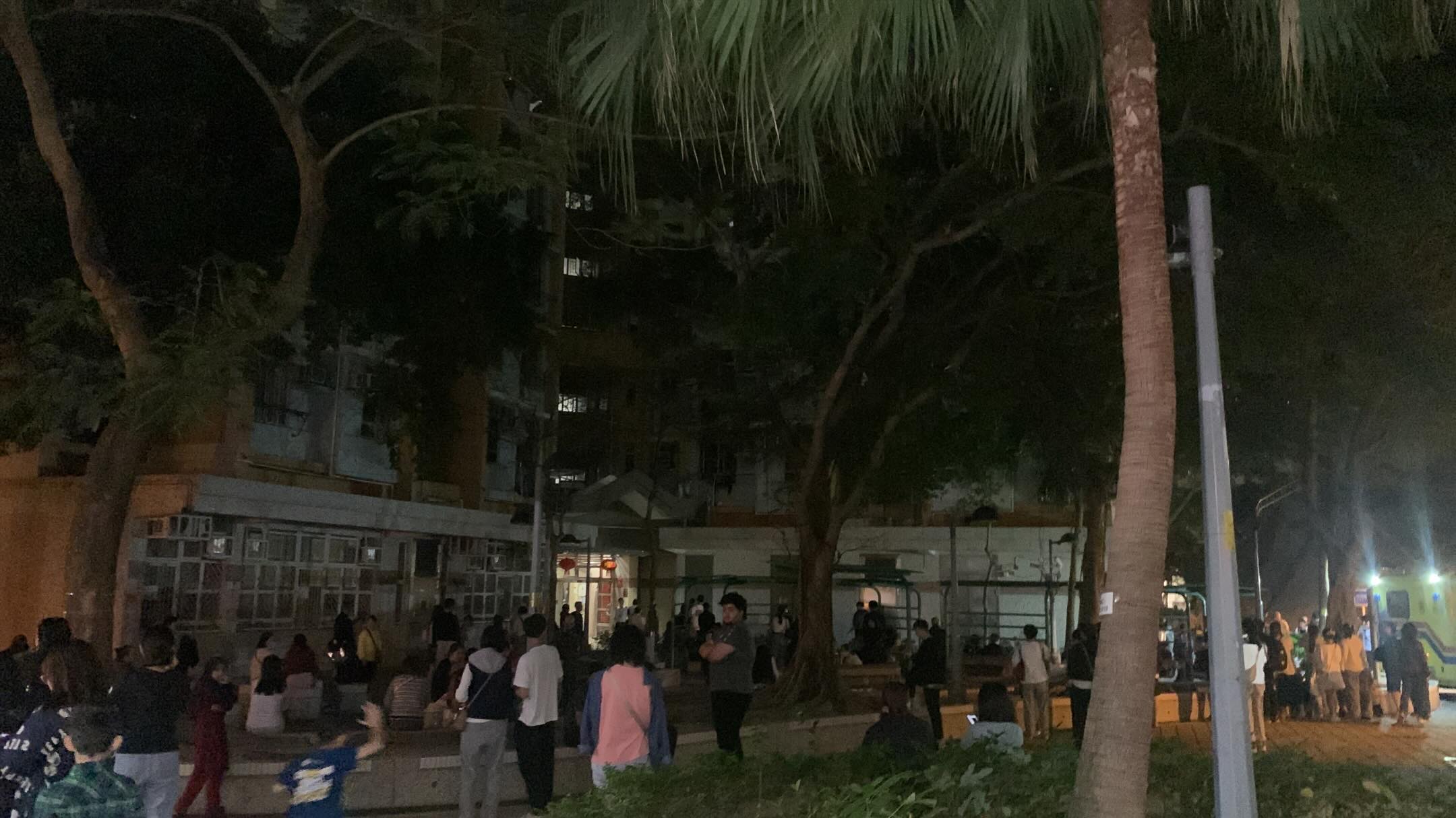 據了解,事發後警方曾接獲住戶報案,稱有老婦所使用的呼吸機電量過低;亦有人報稱被困升降機。現場可見,整幢大廈除逃生梯及大堂部分位置外,均一片漆黑。