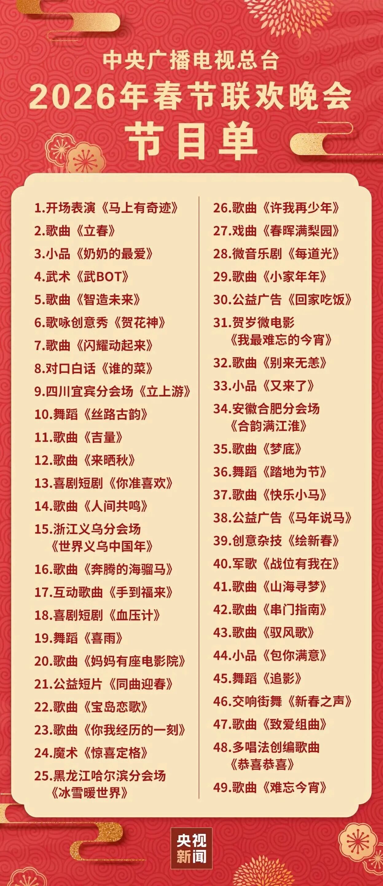 轉存!簡版總台馬年春晚節目單