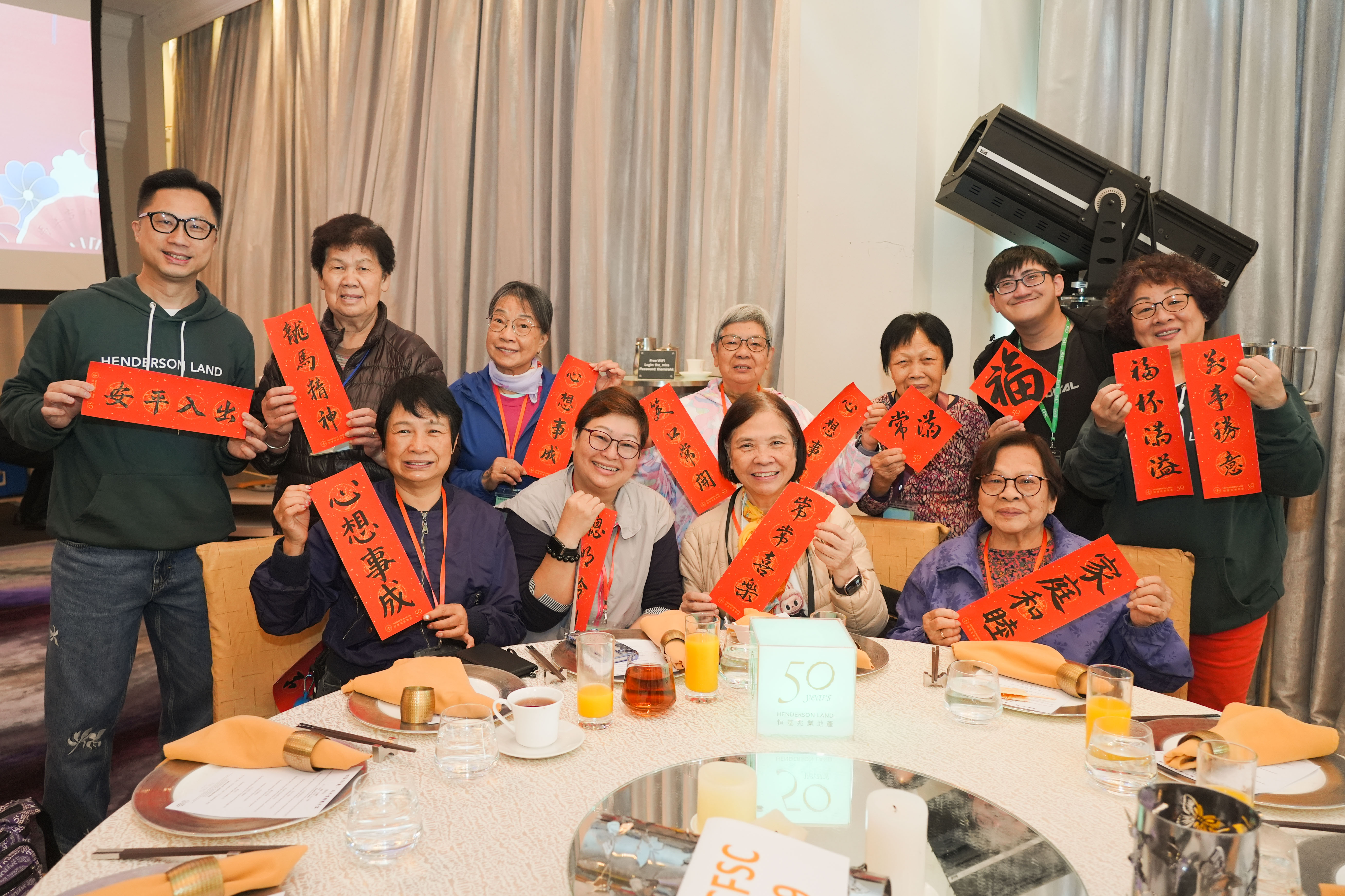 多位立法會議員、政府官員、非牟利機構合作夥伴、商界代表,以及恒基溫暖工程義工隊成員均出席支持,與長者一同送蛇迎馬。多位恒基溫暖工程義工隊成員亦有參與團年宴,除與長者互動交流外,還親手為長者書寫揮春,送上新年祝福。此外,各參與長者更獲贈新春福袋,內含應節食品及圍巾等實用禮品。