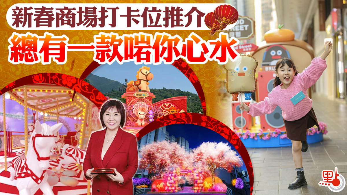【點新聞報道】農曆新年全港各大商場都換上喜氣洋洋嘅馬年主題布置,真係好有節日氣氛,影相打卡一流。唔少商場仲設有主題影相位,例如係巨型燈籠、桃花樹,或者係卡通人物同馬仔嘅造型,總有一款啱你心水。快啲約埋親朋好友,一齊去感受吓呢個濃厚嘅農曆新年氣氛啦!