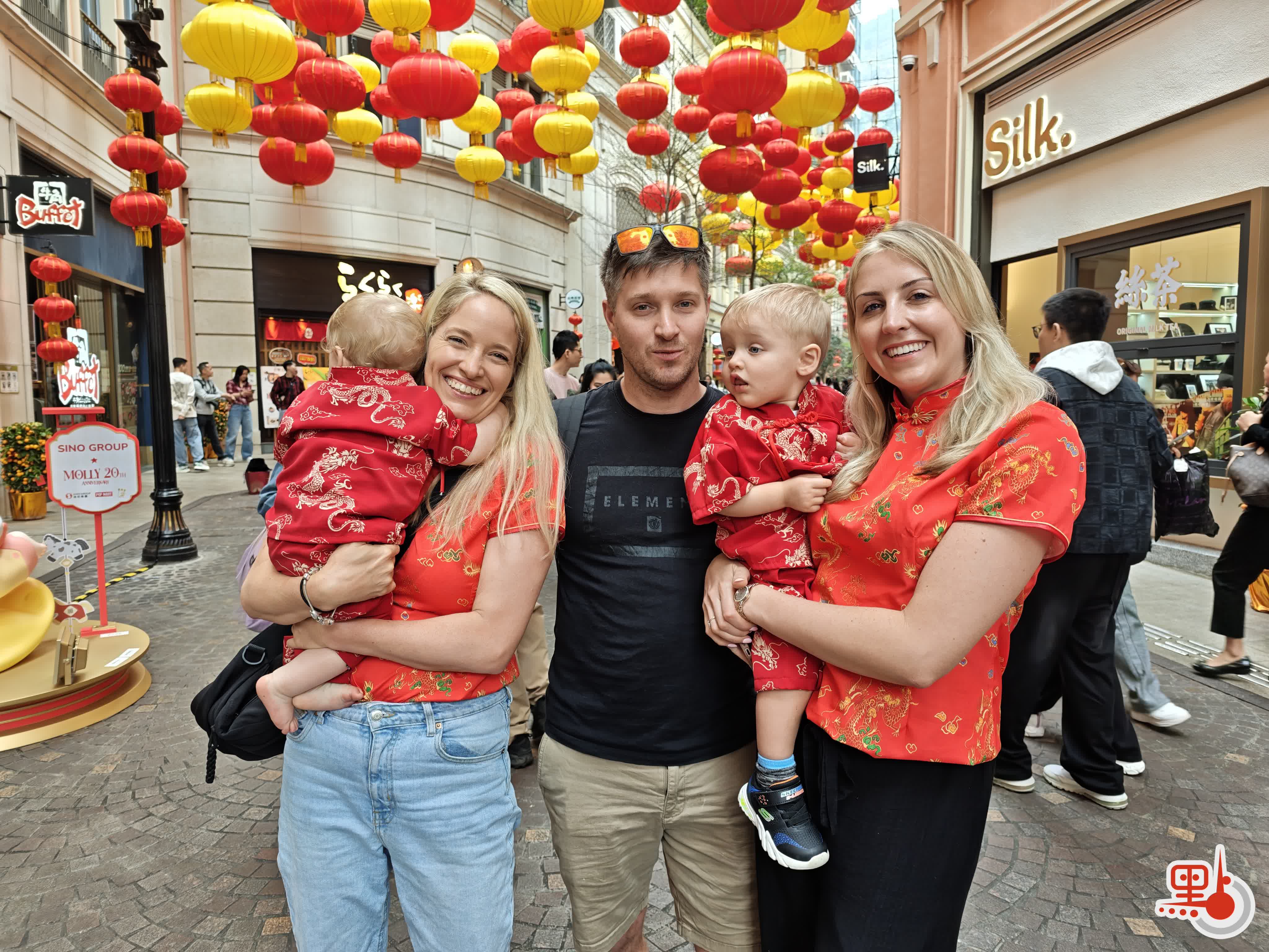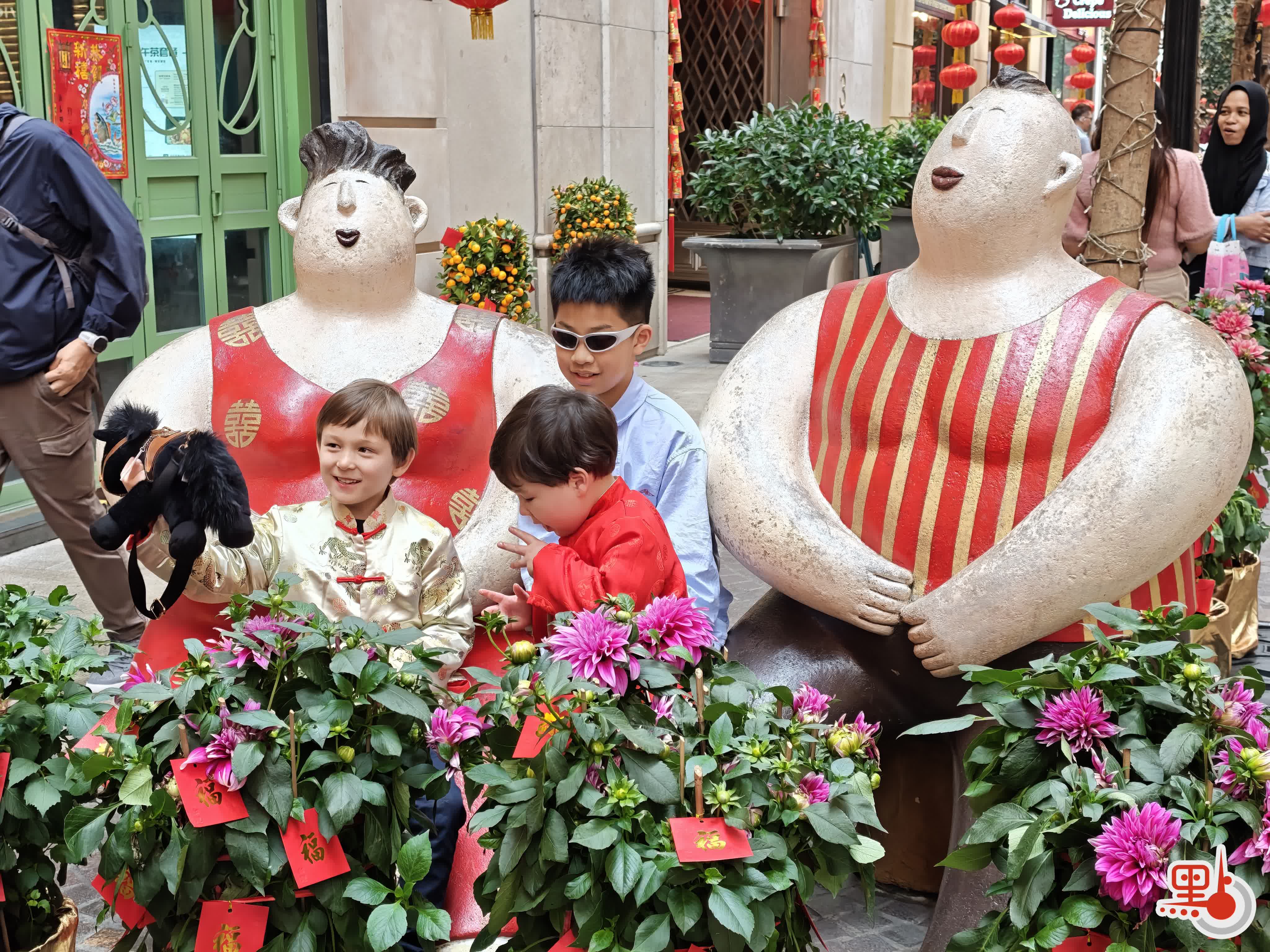 來自倫敦的遊客John一家三口剛與街邊的醒獅表演隊伍合照,對此十分興奮。他告訴記者,其妹妹在港生活,自己是趁春節前來「探親」。早前他已欣賞了西貢的美麗海景,今日則來到市區體驗新年氛圍,還特地給孩子穿上了紅紅火火的節慶服裝。利東街初一至初三會定期舉辦醒獅表演,John說自己雖在倫敦亦曾觀賞類似活動,但香港「慶祝得更隆重」;此外,街道上西式建築與中式新春裝飾的結合也令他印象深刻,直呼「漂亮」。