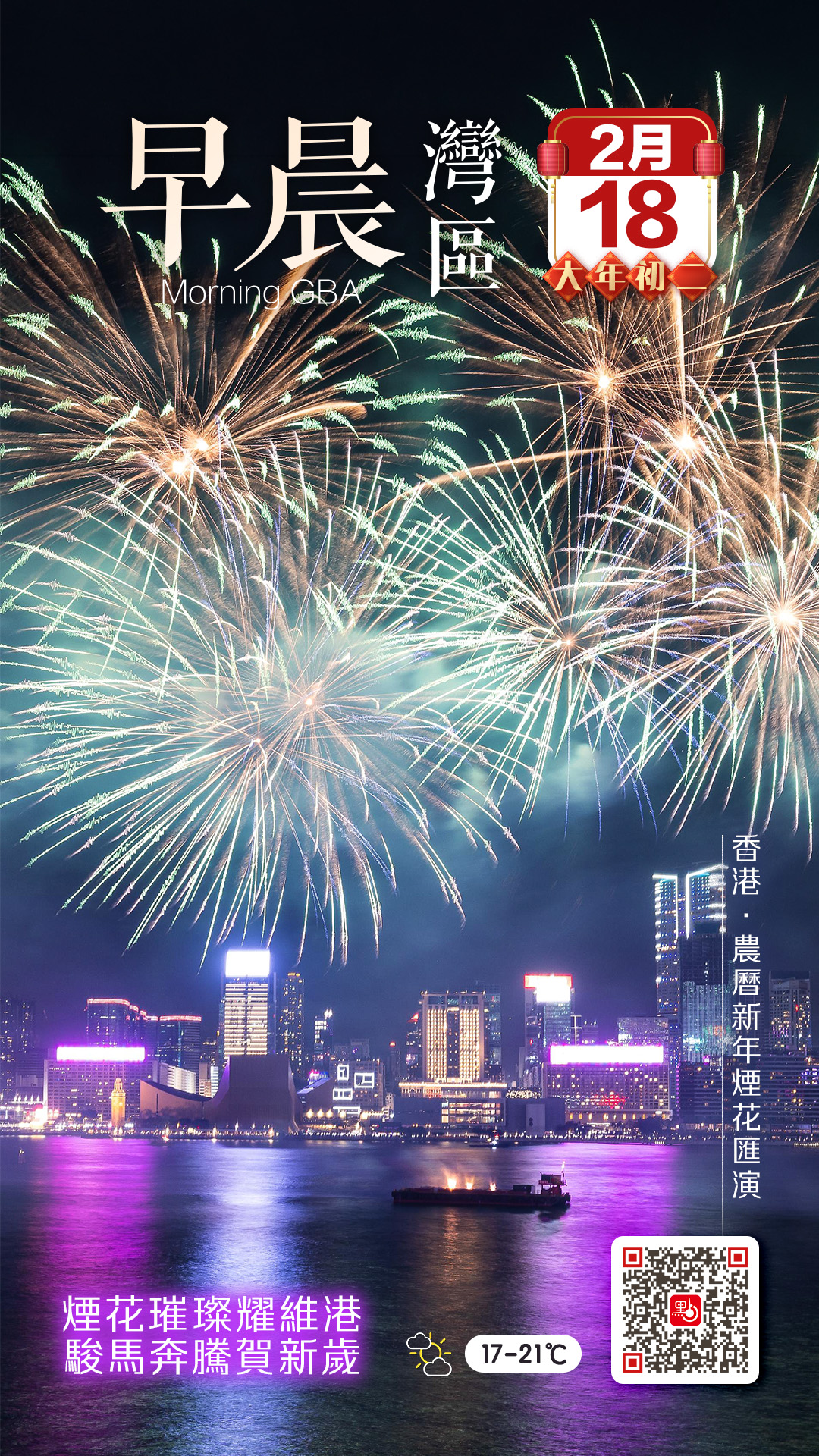 【點新聞報道】2026年農曆新年煙花匯演今晚(2月18日,大年初二)8時於維多利亞港上空隆重舉行,與市民及訪港旅客一同喜迎新春!