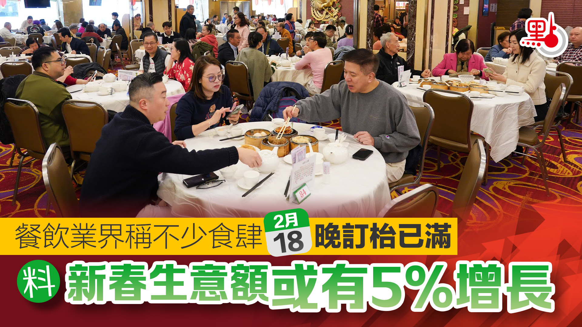 【點新聞報道】今日(18日)是大年初二,不少市民或公司會外出吃開年飯,香港餐務管理協會主席梁振華表示,不少食肆今晚訂枱已滿,又預計今年新春市道,餐飲業生意額約有5%增長。