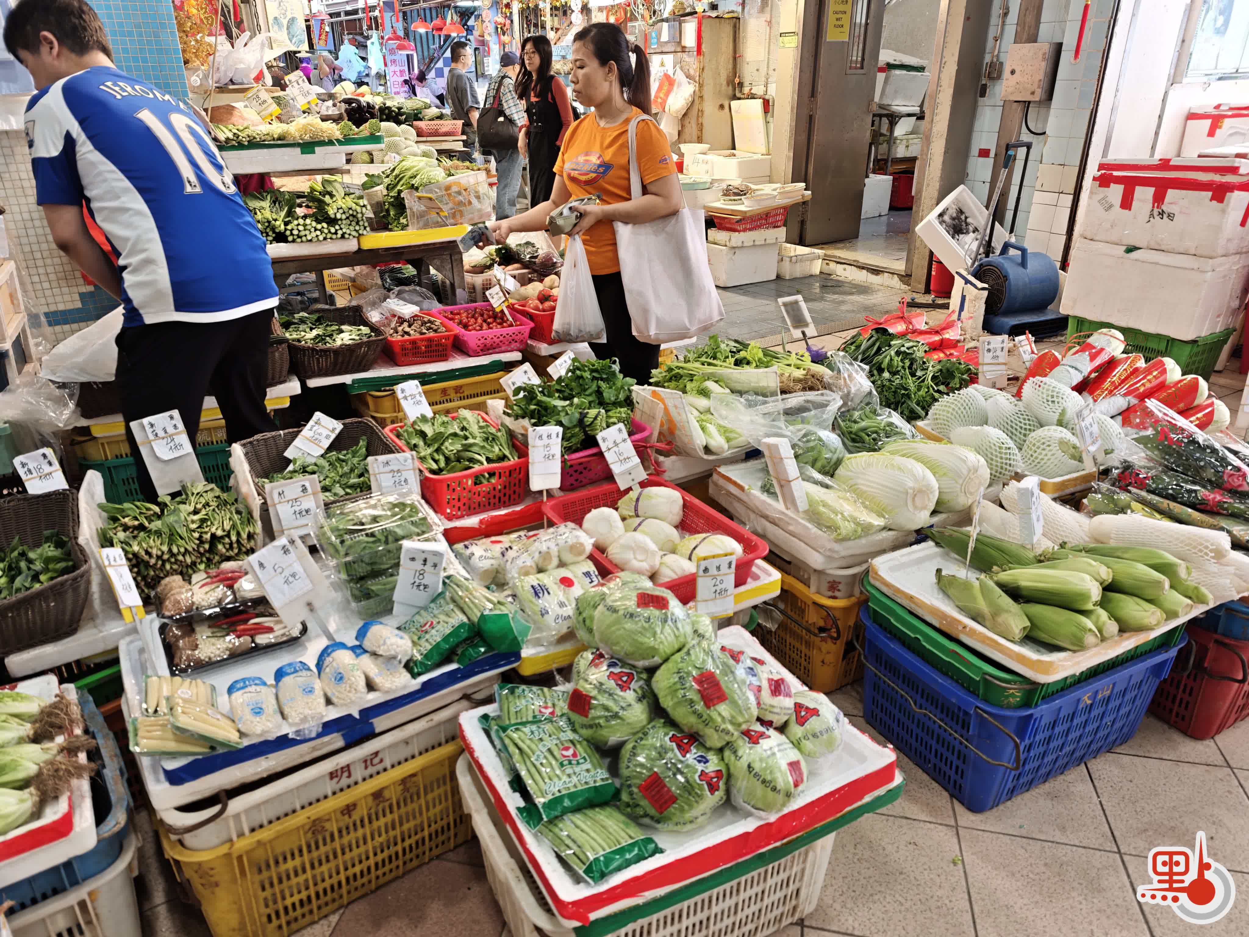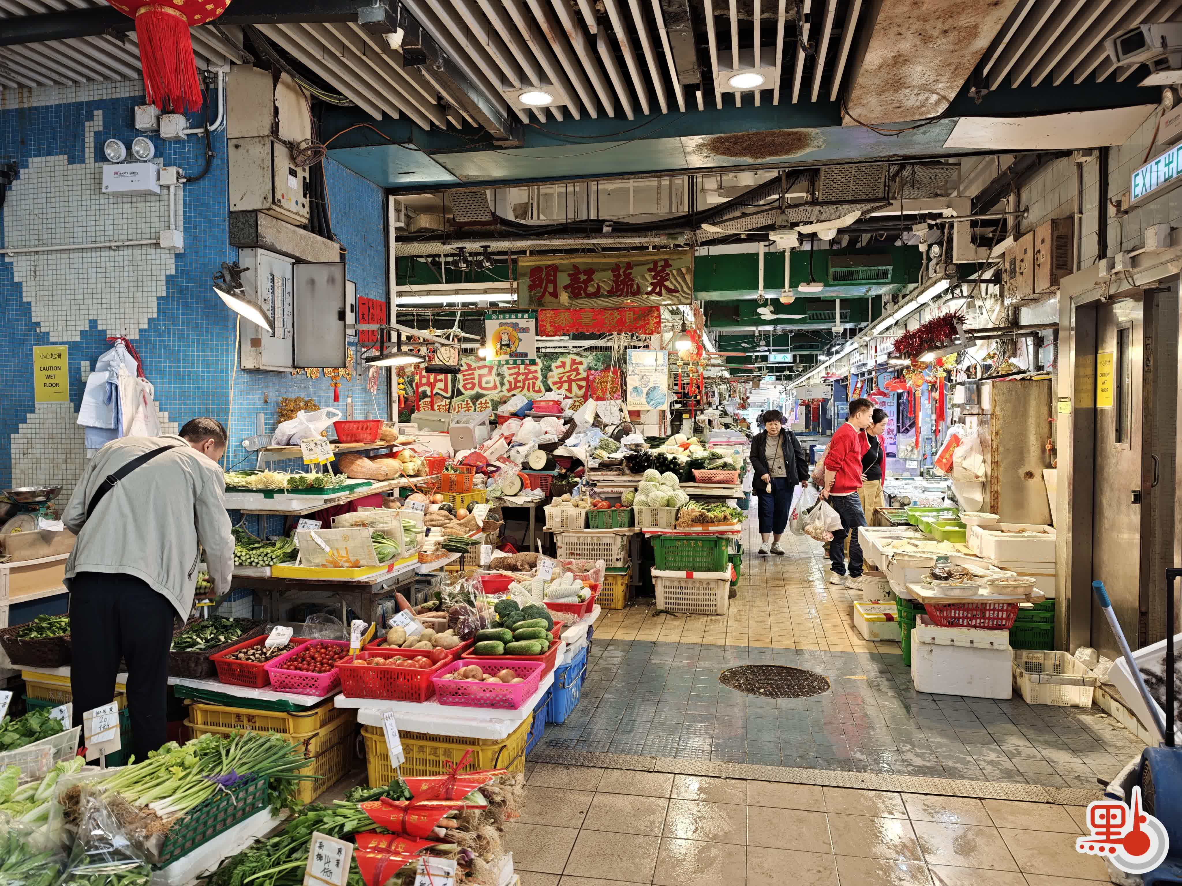 另一邊的菜檔亦有不少顧客。檔主張先生表示,今日市場人流與往年同期相若,生意「大致持平」,菜價未有大幅調整,其中20元一斤的生菜銷路最好。被問及總體感受時,他以「平淡」形容,指過年「香港少咗人」,至於今晚銷售,他未有預估,「正常就好」。