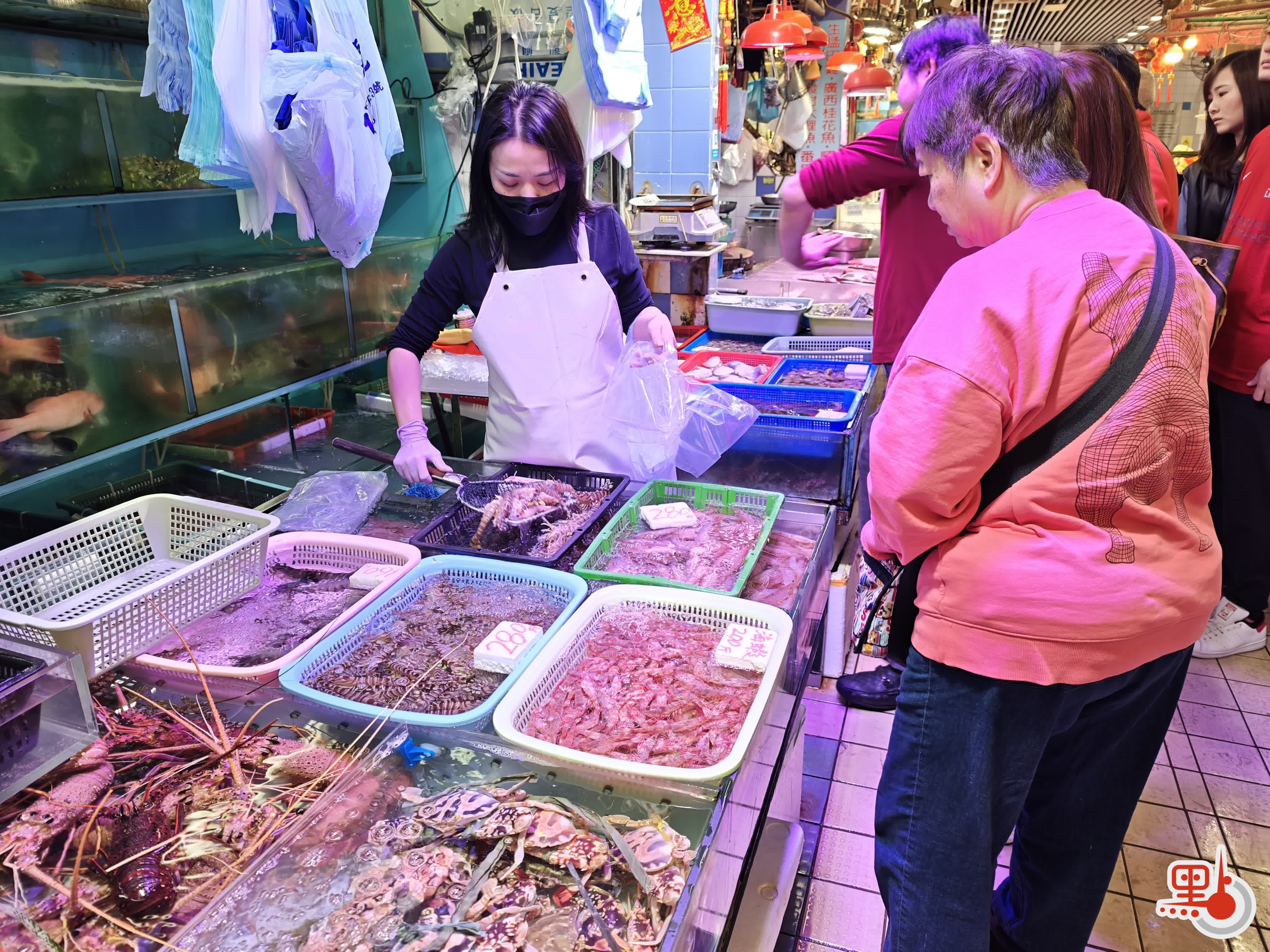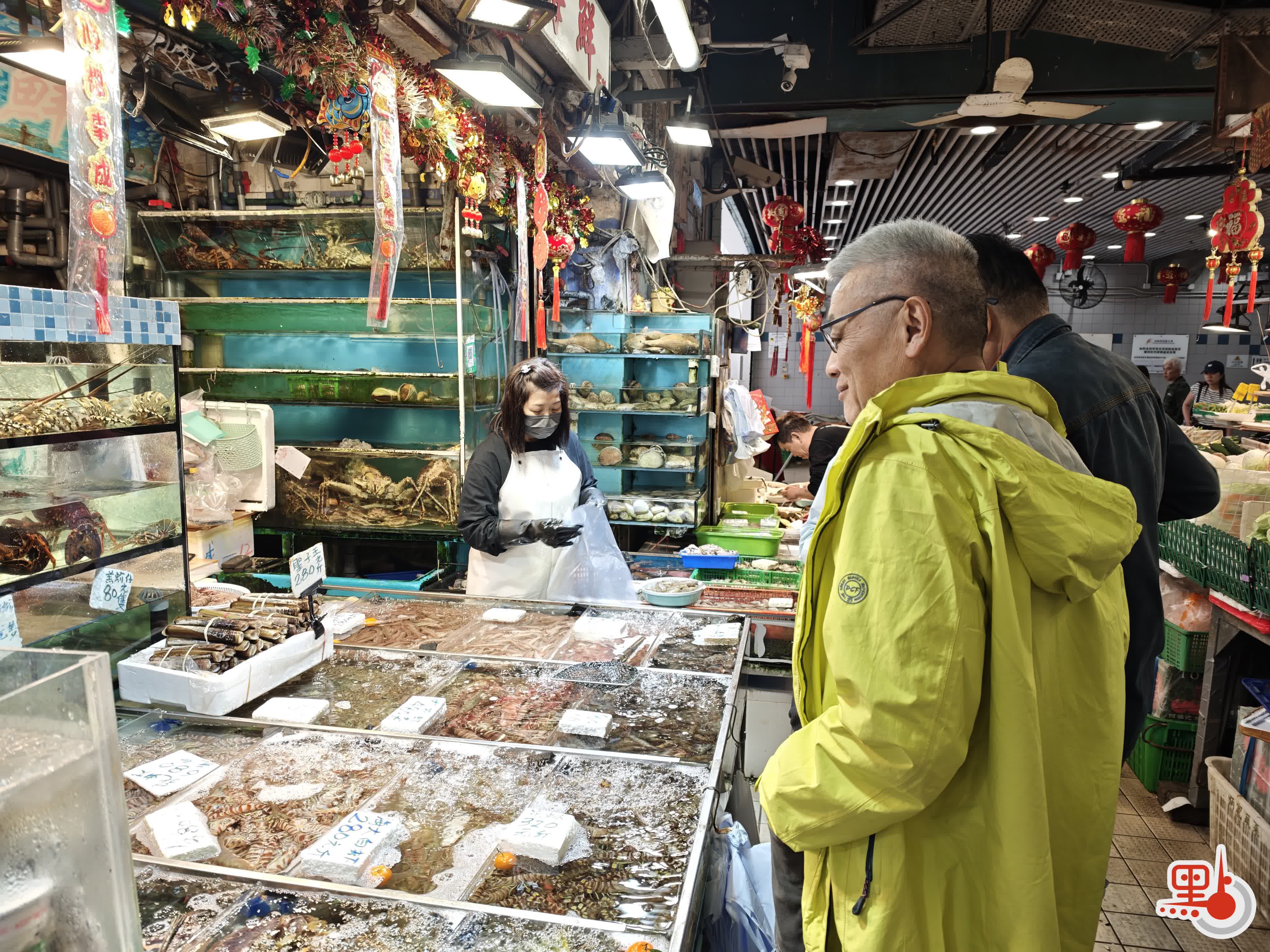 記者觀察,今日九龍城街市僅有少部分檔舖營業。其中,水產生意最為火爆,海鮮檔檔主冼女士受訪時正忙個不停。她告訴記者,本來從新聞得知大批港人外遊,對生意未抱有太大期望,但開檔後竟顧客如雲,忙得不可開交。她估算,今日生意增長至少超一成,「比預期好了很多」。值得一提的是,冼女士在檔內數池中各泡小桔,指此寓意新年吉祥,今日好意頭似乎應驗。