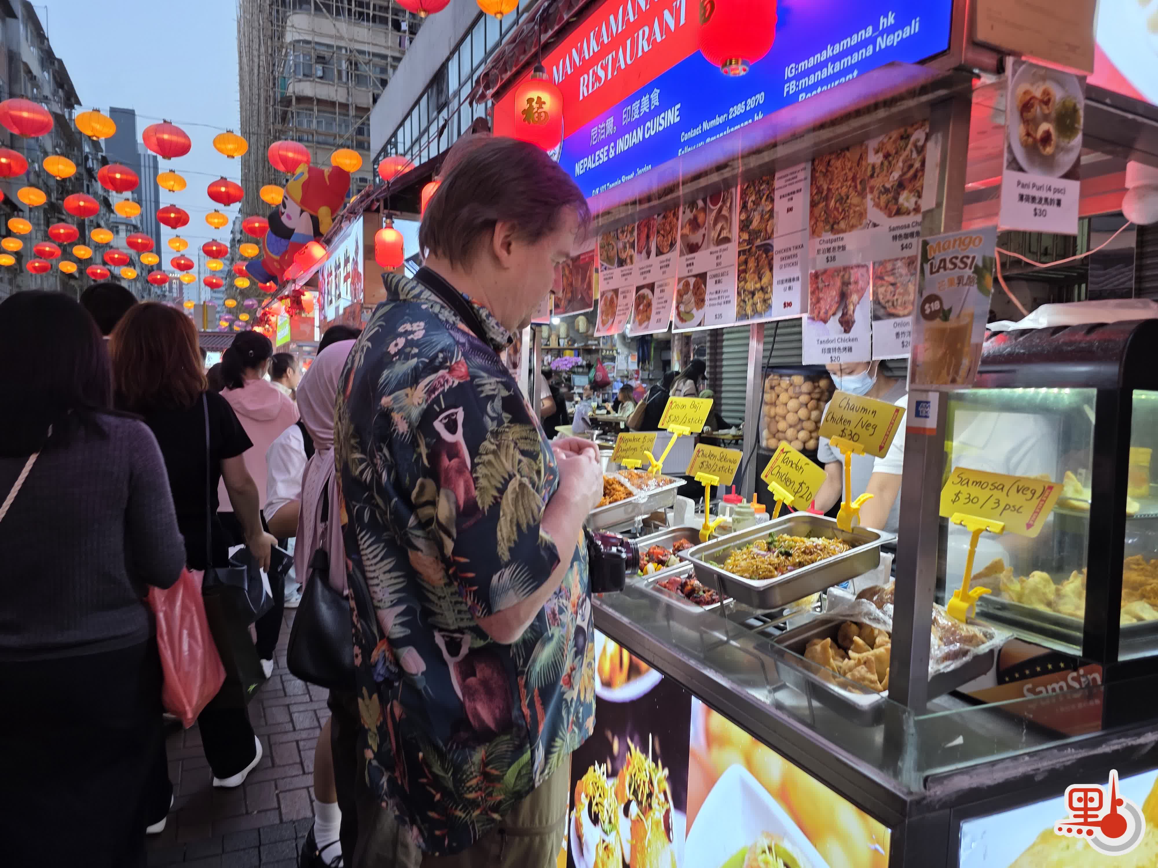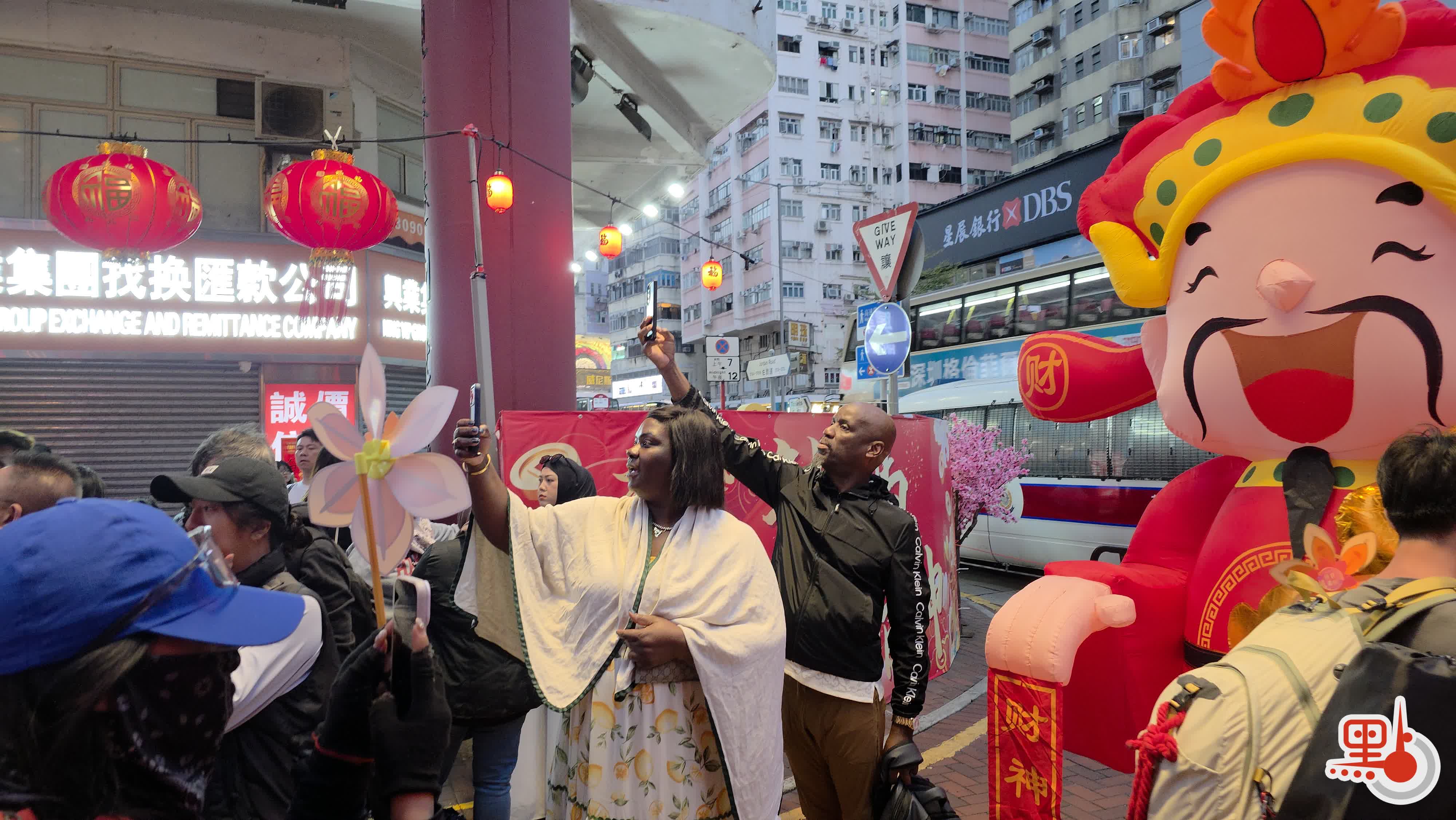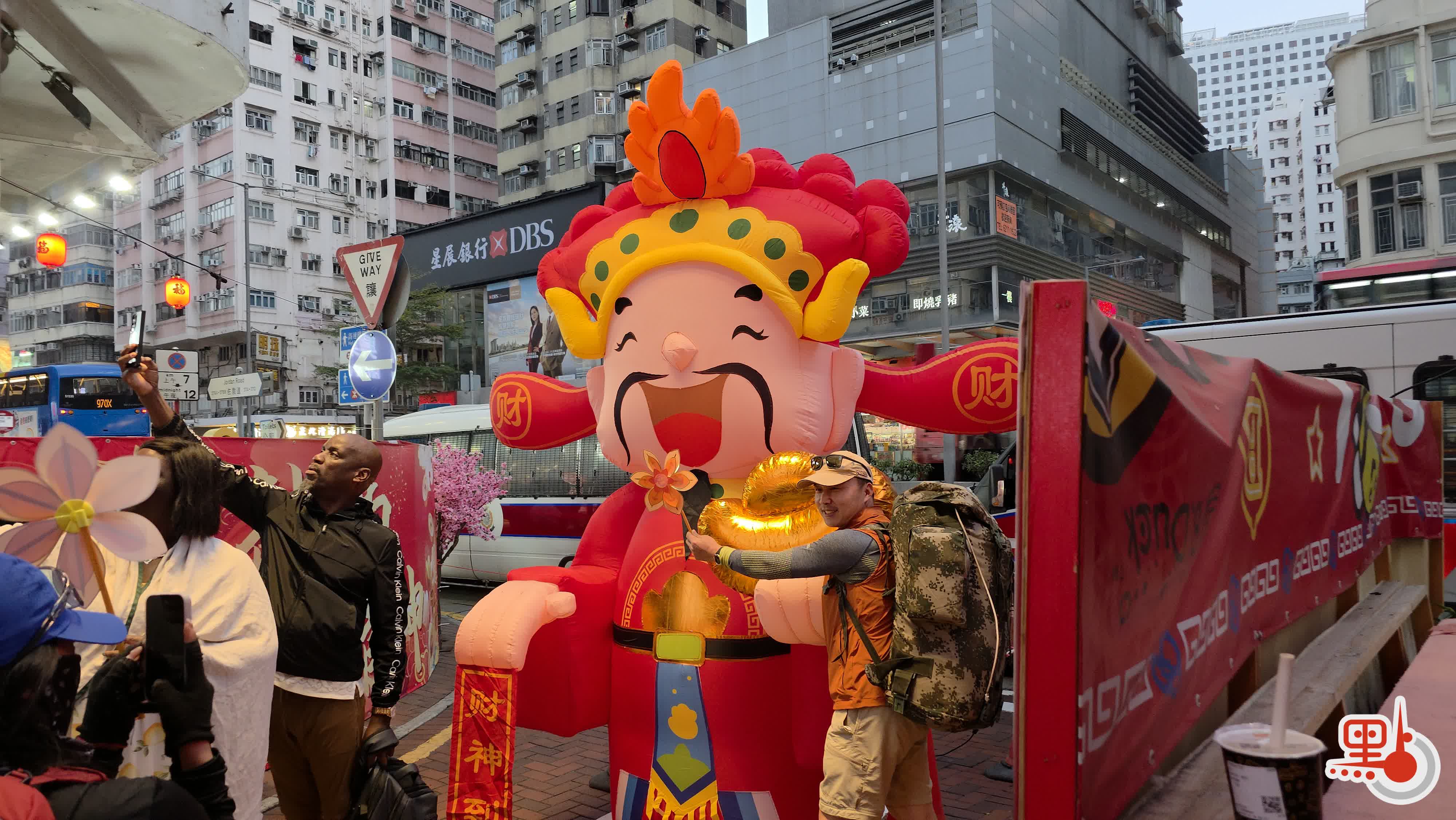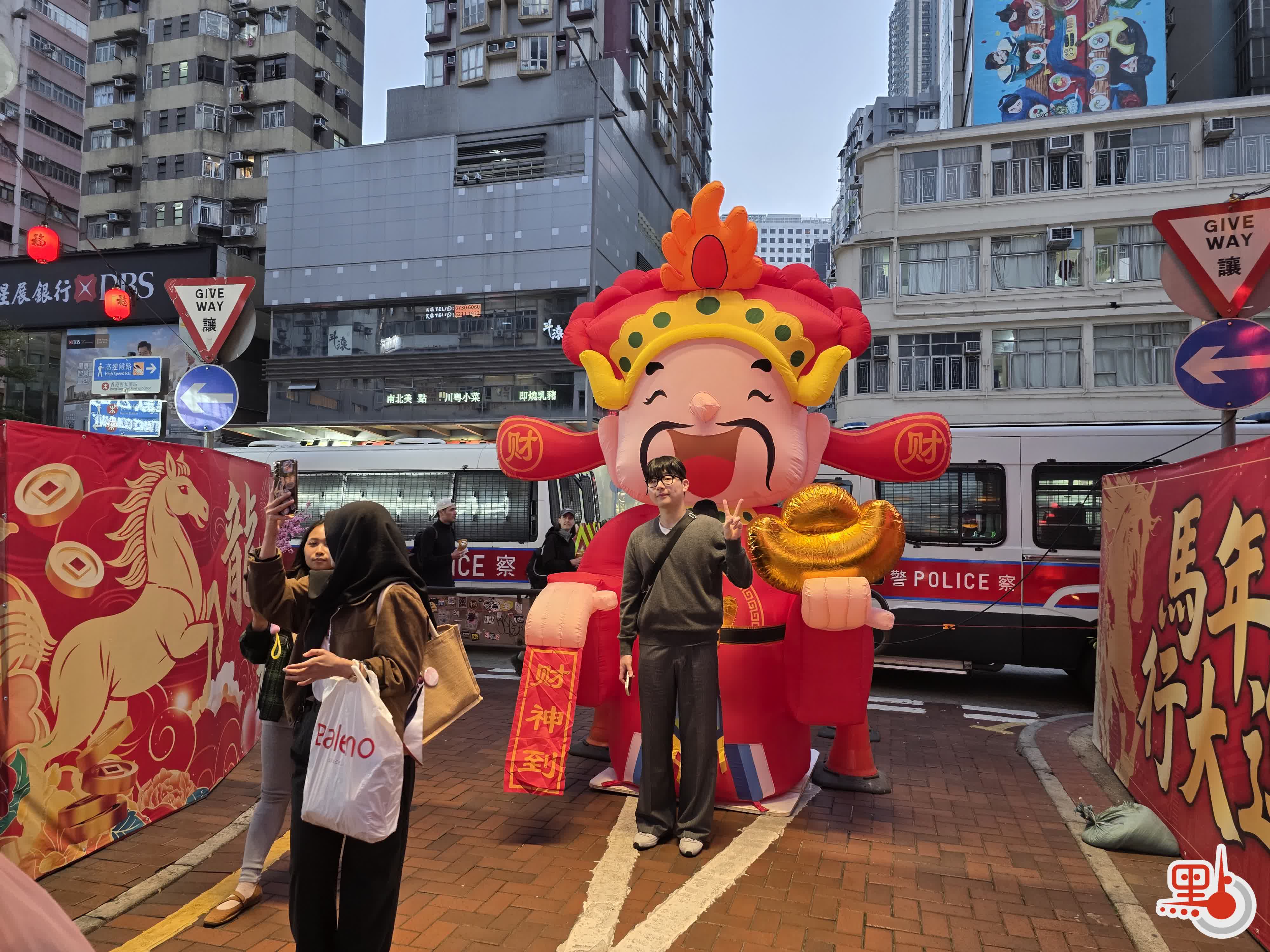【點新聞報道】油麻地街坊會聯同油尖旺民政事務處於2026年1月1日至2月22日舉辦油麻地美食購物節,與「油蔴地警署光影之旅」展覽聯動,多個商戶及團體將提供折扣優惠及贈送紀念品。今日(18日)是大年初二,油麻地廟街人山人海,其中有不少外國面孔,他們興奮與「財神爺」合影及購買小食,共賀新年。