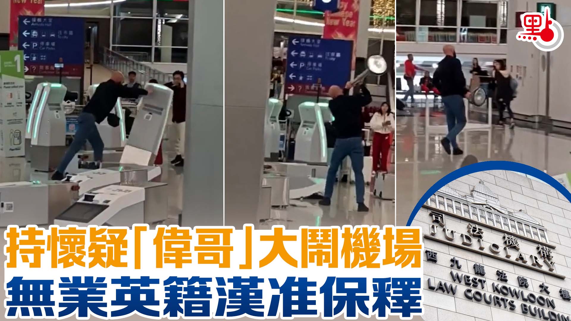 持懷疑「偉哥」大鬧機場 無業英籍漢准保釋