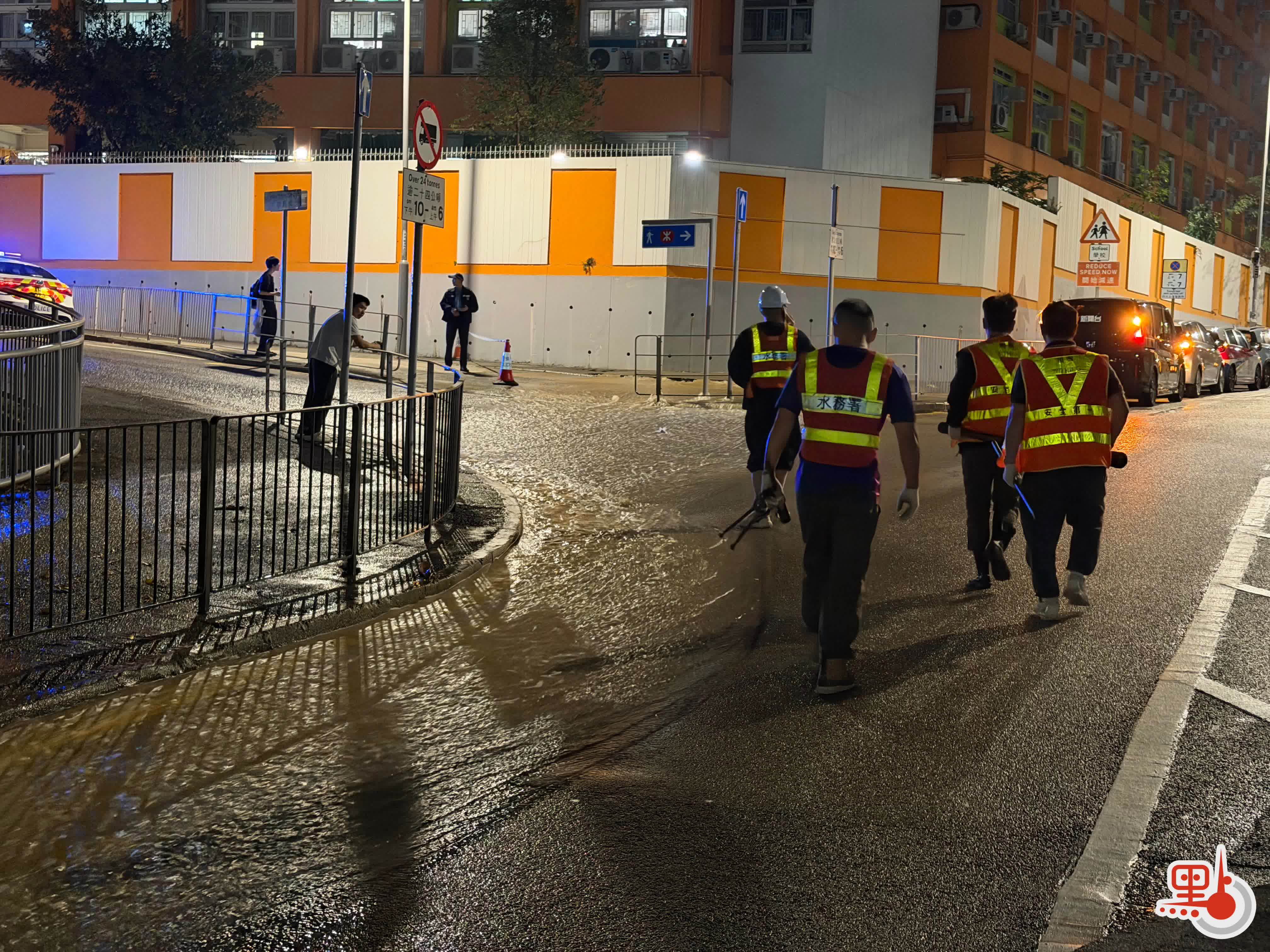 水務署表示,已接獲報告指何文田忠孝街與孝民街交界有鹹水供水管滲漏,並已派員前往現場跟進。