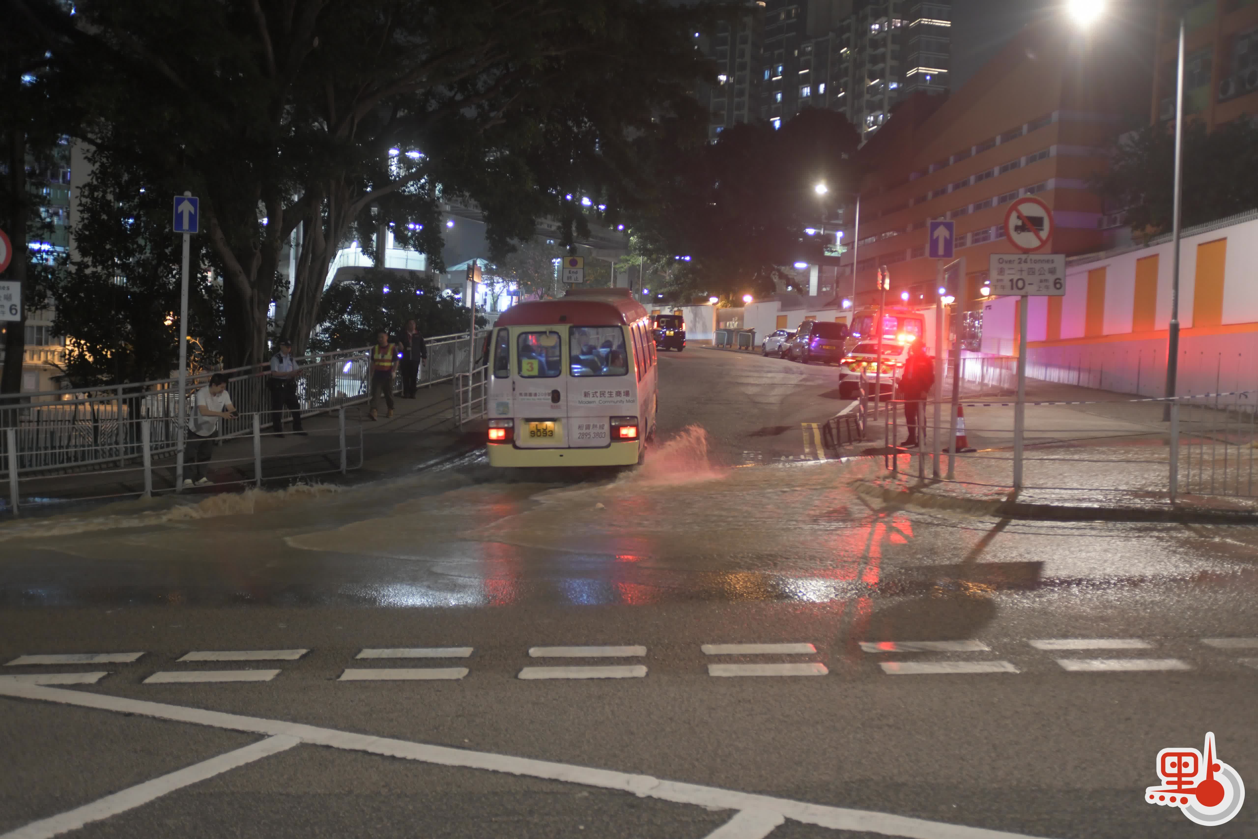 【點新聞報道】今日(20日)晚上7時許,何文田愛民邨忠孝街及孝民街交界有鹹水管爆裂,大量鹹水夾雜沙泥湧出路面,並沿斜路傾瀉而下,愛民廣場巴士總站儼如澤國,車輛及途人需涉水而行。警員接報到場,隨即封鎖受影響路段並指揮交通,水務署派員到場搶修。