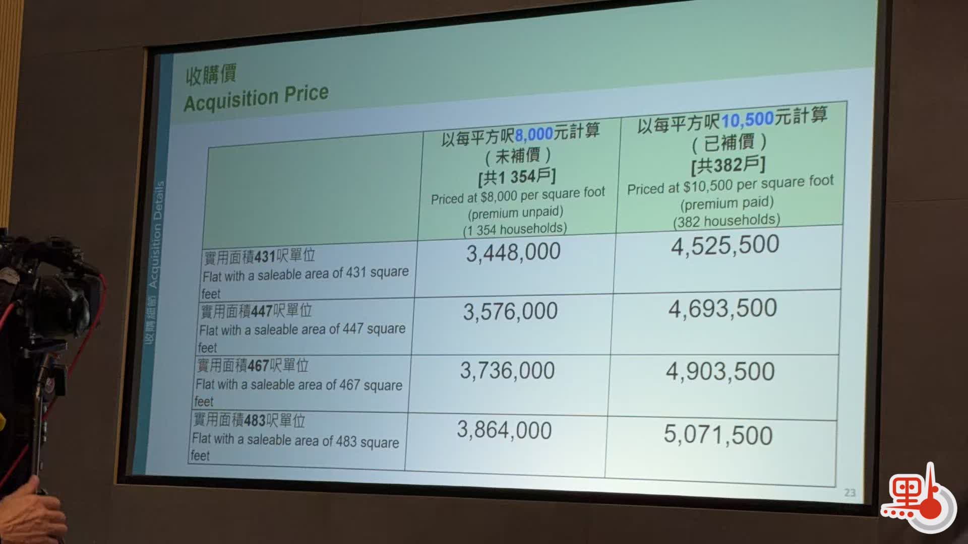 (有片)宏福苑善後|政府收購業權未補價呎價8000元 已補價呎價10500元