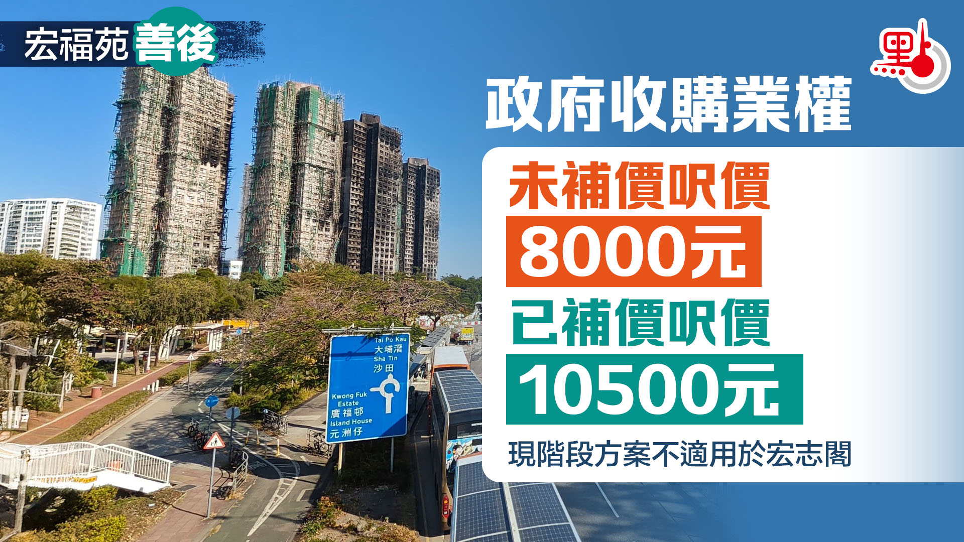 大埔宏福苑火災後至今近3個月,由財政司副司長領導的「應急住宿安排工作組」不斷地在工作。之前,已透過「一戶一社工」以問卷形式收集居民就長遠方案的意見,當中包括維修、重建,以及收購業權等等選項。政府已收集完宏福苑居民對長遠安置之意見。問卷調查的數據顯示大部分(超70%)居民均希望政府盡快協助解決長遠安置及希望政府收購業權,由於希望在「原址重建」的居民的比例非常少,因此政府決定收購業權,放棄原址重建。
