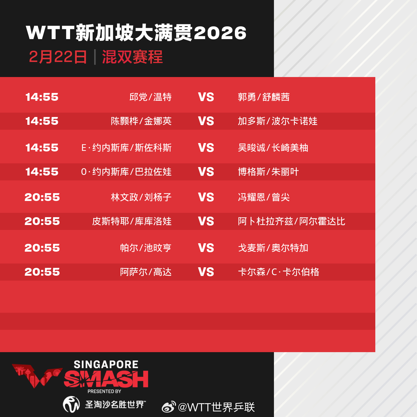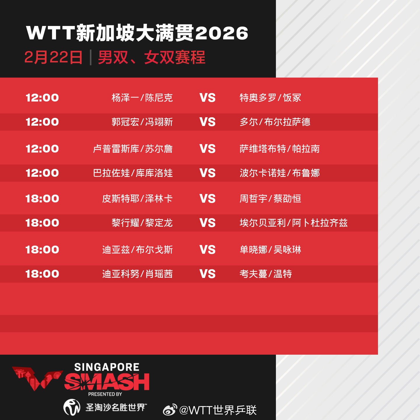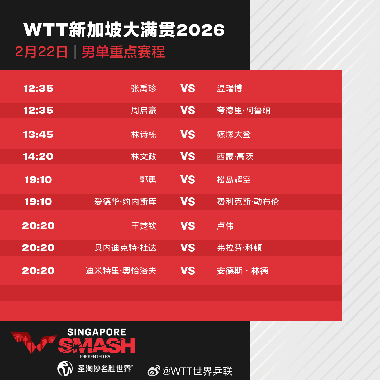 男單方面,王楚欽將迎戰澳大利亞選手盧偉,林詩棟則迎戰日本選手篠塚大登;女單方面,王曼昱將迎戰新加坡選手曾尖,新生代小將陳熠將迎戰奧地利老將索菲亞·波爾卡諾娃。