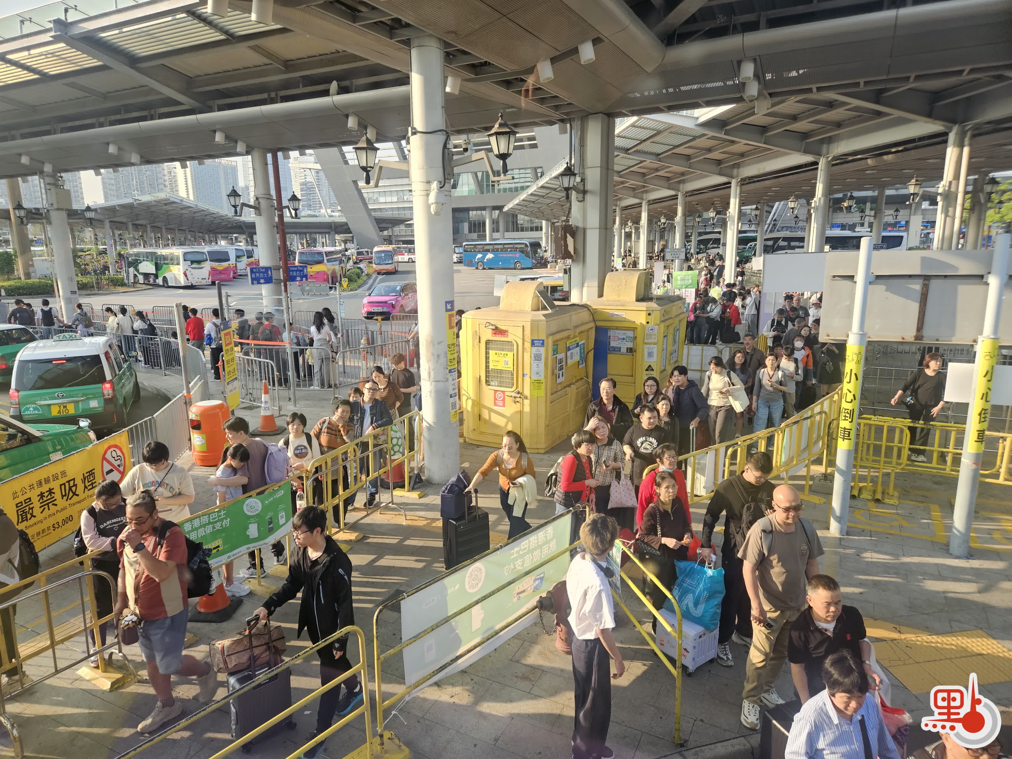 (有片)深圳灣口岸現返港人潮 巴士站的士站大排長龍