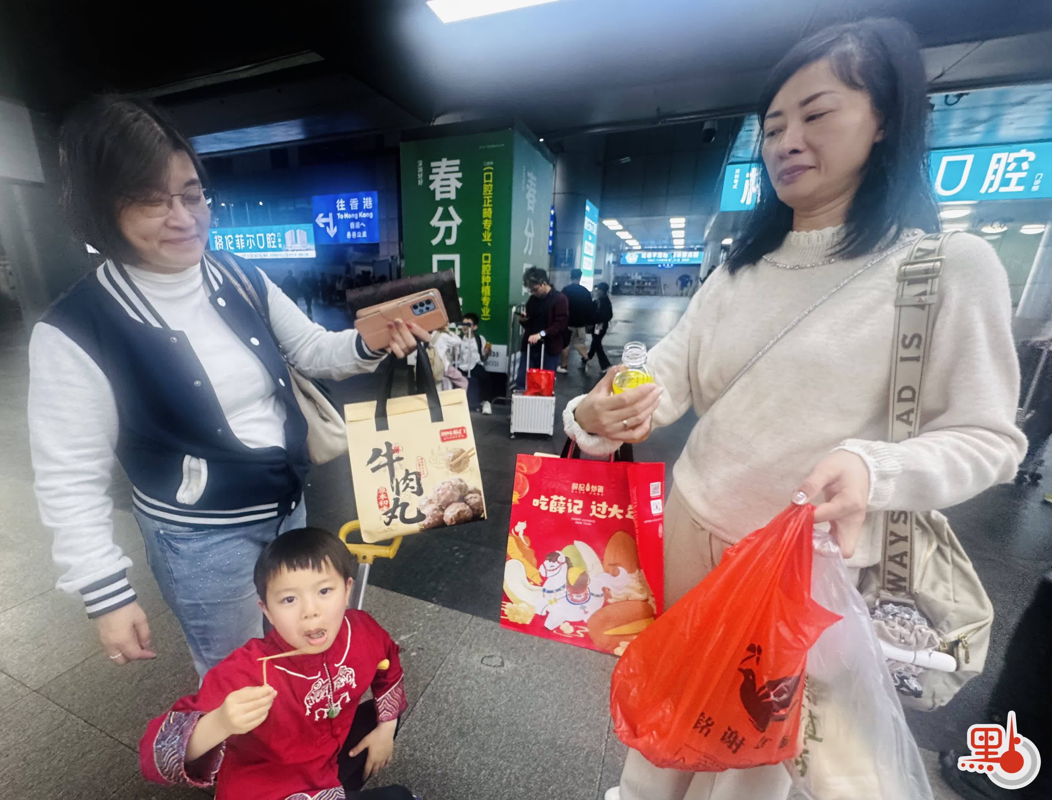 她坦言有去深圳的山姆超市,但「去了一下就出來了,裏面的人實在太多,香港人和內地人都有」。問及行李,她表示行李箱裏裝的主要是去內地遊玩幾天度假用的衣服;而手中提的大購物袋裏,則裝了一些給小朋友和家人的手信。