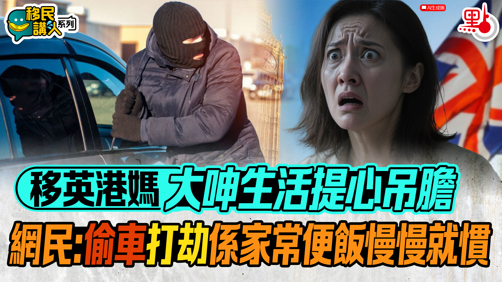 移民講人|移英港媽大呻生活提心吊膽 網民:偷車打劫係家常便飯慢慢就慣