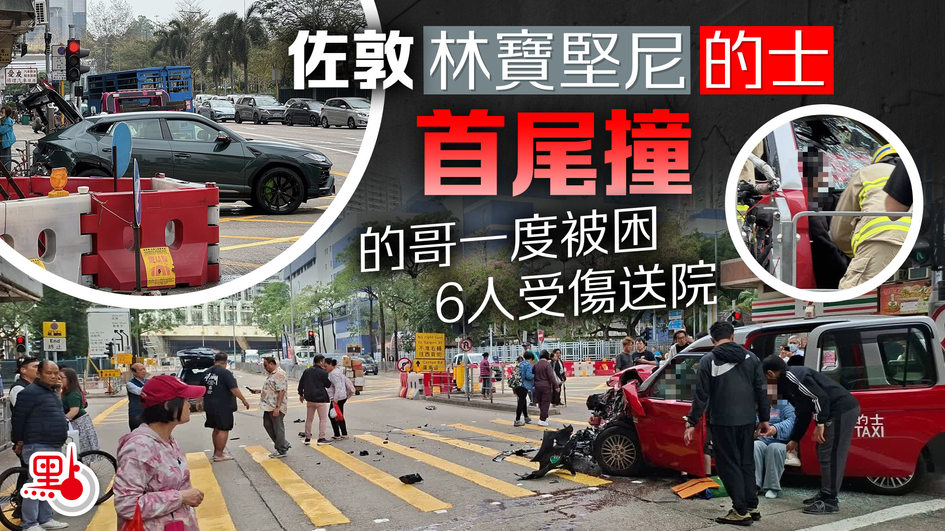 佐敦林寶堅尼的士首尾撞 的哥一度被困 6人受傷送院