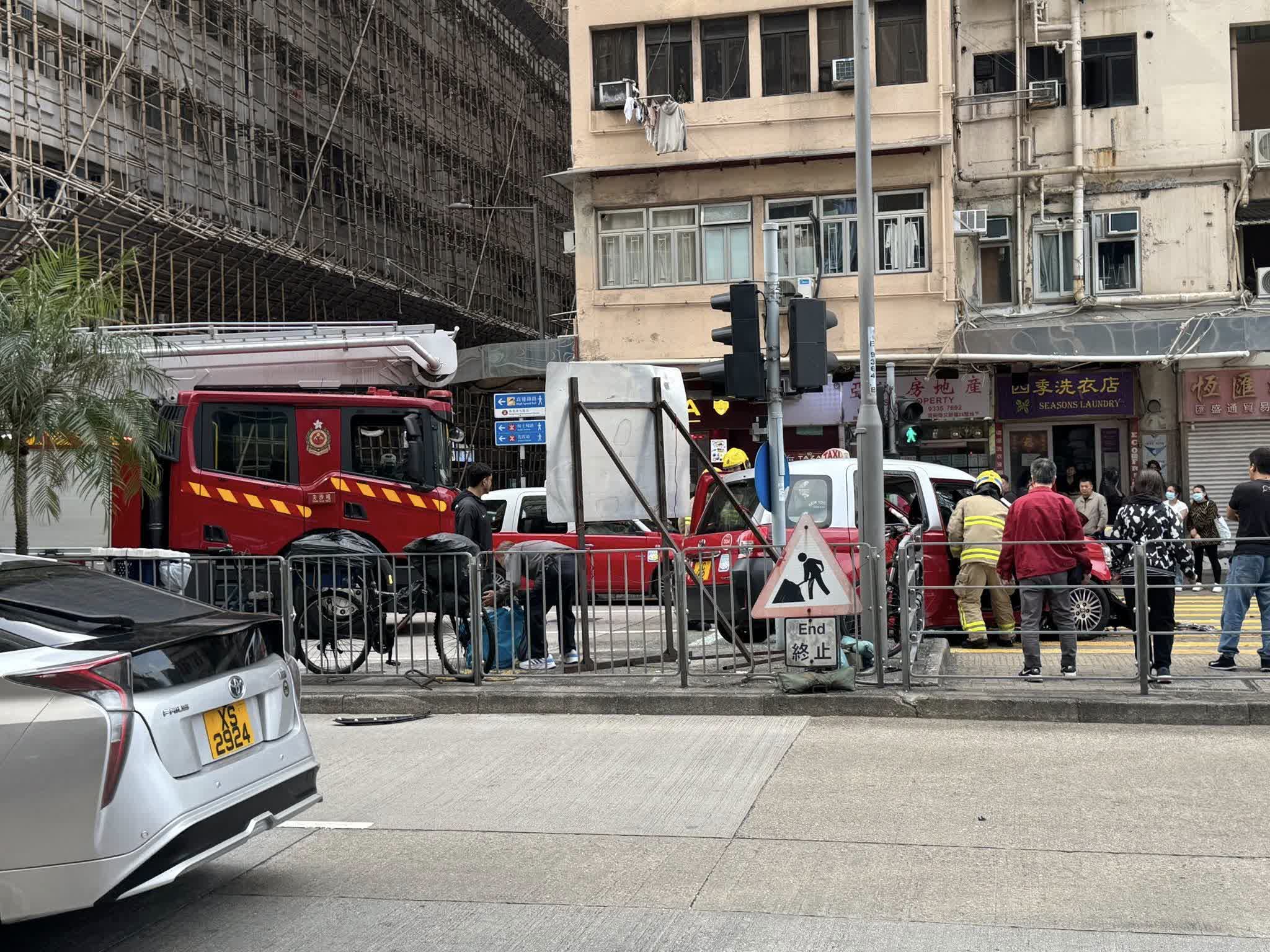 【點新聞報道】今日(23日)下午3時許,一輛林寶堅尼SUV及一輛載客的士,沿佐敦渡船街往深水埗方向行駛,當駛至近佐敦道一交通燈位,的士懷疑收掣不及撞向私家車車尾。人員接報趕至,的士司機一度被困,需由消防救出送院。據悉涉事的士有2名成人及2名小童乘客輕傷,林寶堅尼司機報稱胸口痛,全部清醒送院治理。警方封鎖現場,並就事故展開調查,涉事的士車頭嚴重毀爛,車輛零件散落路面,林寶堅尼則車尾損毀。