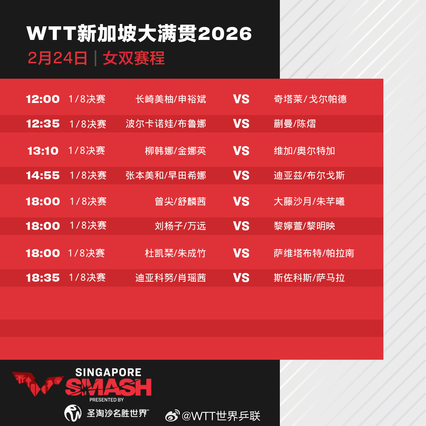 WTT新加坡大滿貫|2·24賽程一覽 王楚欽林詩棟王曼昱等出戰