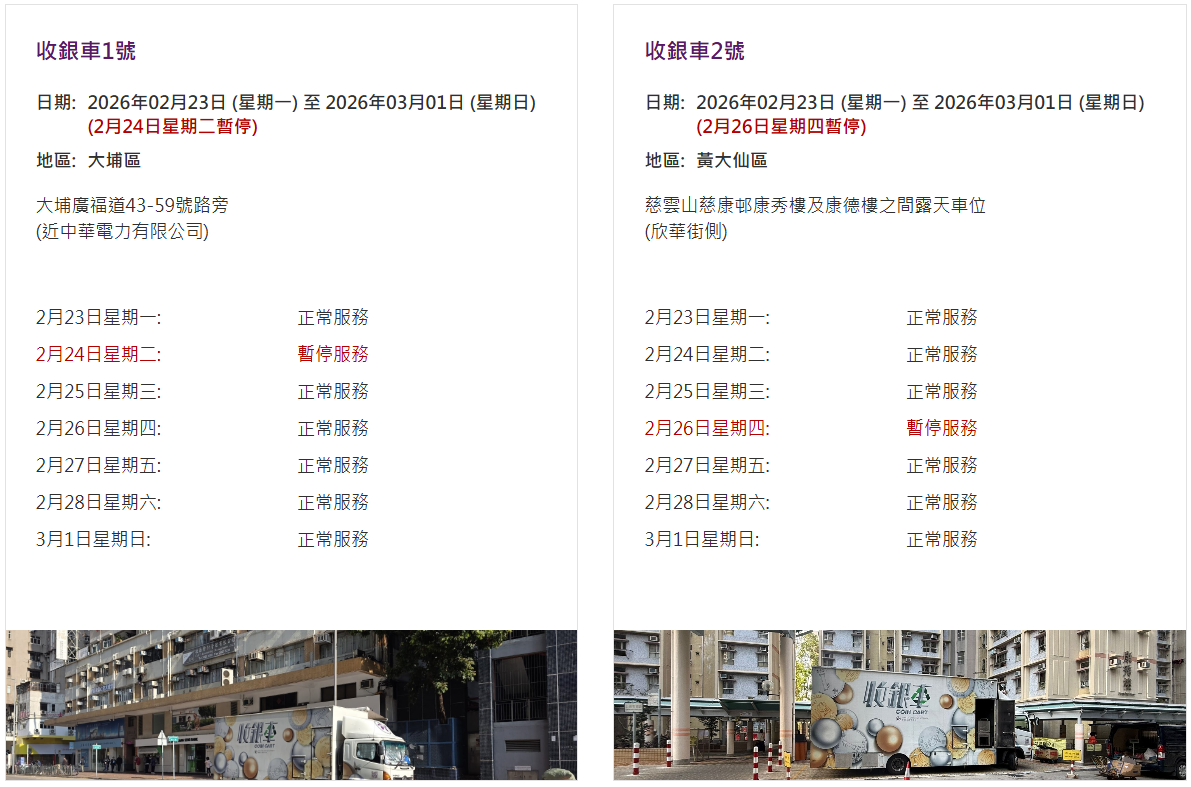 金管局收銀車未來兩月日程表出爐 本周停大埔黃大仙
