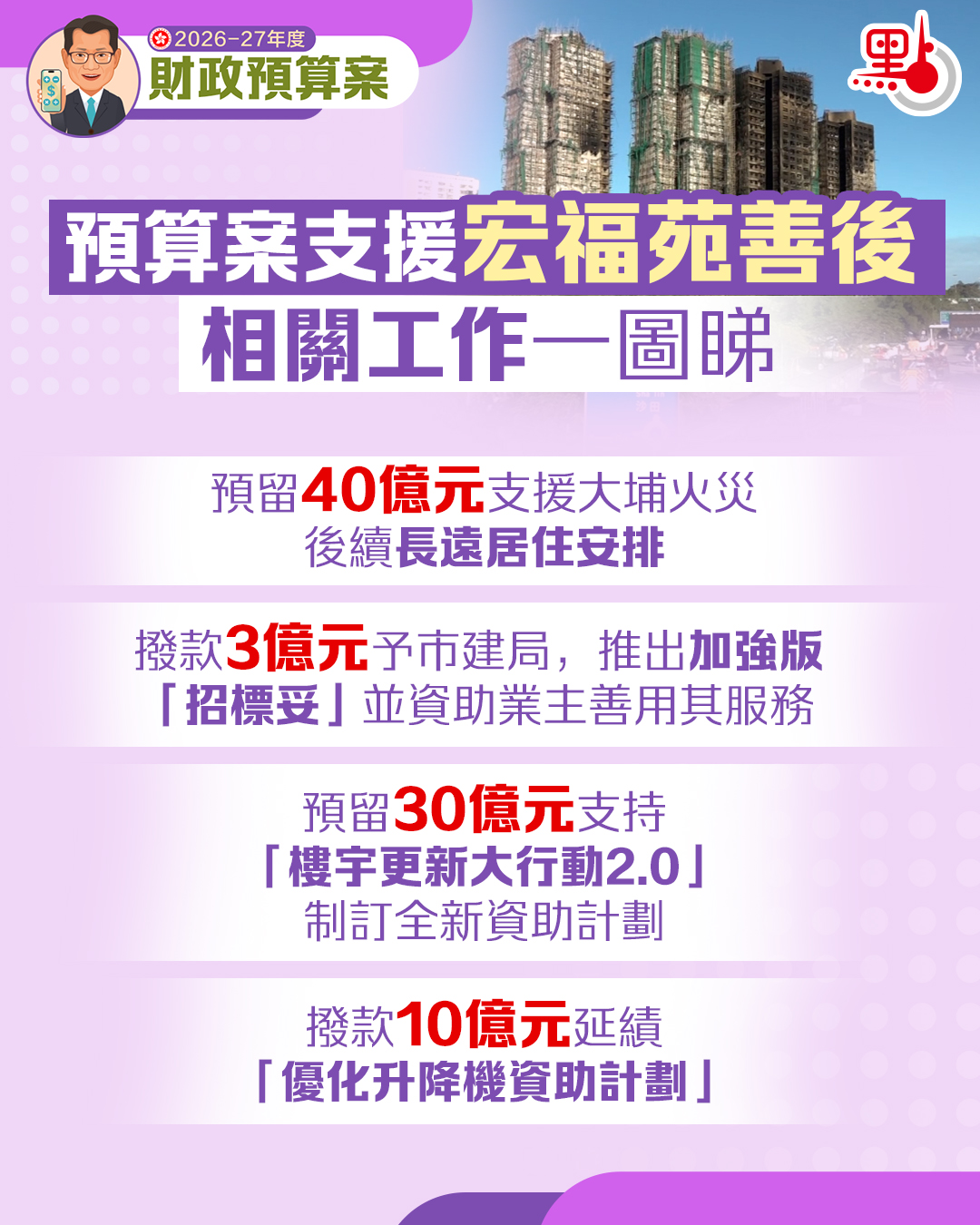 (有片)預算案|預留40億支援宏福苑善後 相關工作一圖睇
