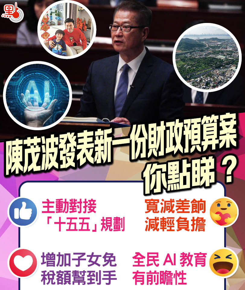 【點新聞報道】財政司司長陳茂波今日(25日)發表新一份財政預算案。在財政狀況明顯改善的基礎上,預算案適度增加對市民和中小企支援的同時,將重點聚焦北部都會區建設、產業升級轉型、知識產權人才培養等長期發展戰略,展現香港主動對接國家「十五五」規劃、追求高質量發展的堅定決心。