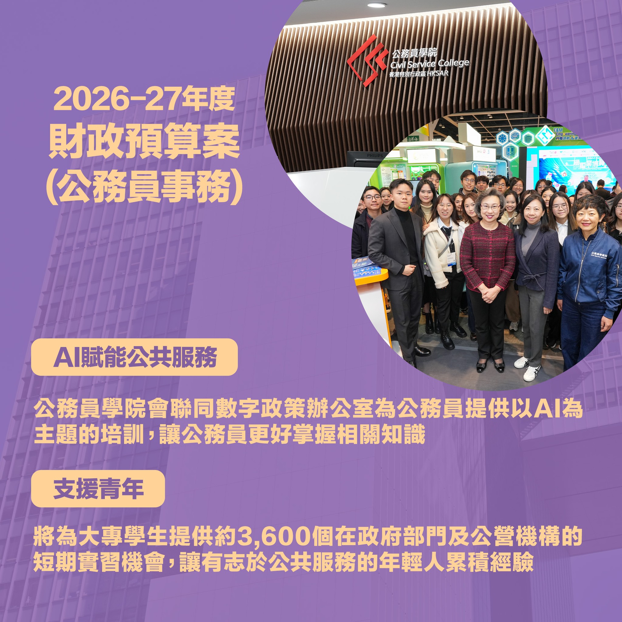 另一方面,楊何蓓茵表示預算案在加速創科發展,提升優勢產業等方面有不少着墨,其中一個重點是促進AI與各產業的深度融合,鼓勵AI廣泛使用,政府會在現有基礎上,積極利用AI及相關科技,以提升公共服務水平。公務員學院亦會聯同數字政策辦公室為公務員提供以AI為主題的培訓,讓公務員更好掌握相關知識,進而更好探索利用AI及相關科技的多元應用。