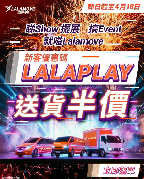為協助個人用戶及中小企更輕鬆地把握盛事經濟機遇,Lalamove本月正式推出盛事出入場專屬雙重優惠計劃。由即日起至4月18日,新用戶輸入優惠碼【LALAPLAY】即可享半價優惠;同時,即日起至3月期間參與【展會演唱會Call車解碼 落單有賞】活動,完成貨Van或噸車訂單即可解鎖高達港幣1,030元的優惠券,不論是粉絲想運送演唱會物資,還是中小企想應對「爆單」需求,Lalamove都能提供高效、安全且可靠的即時配送方案。
