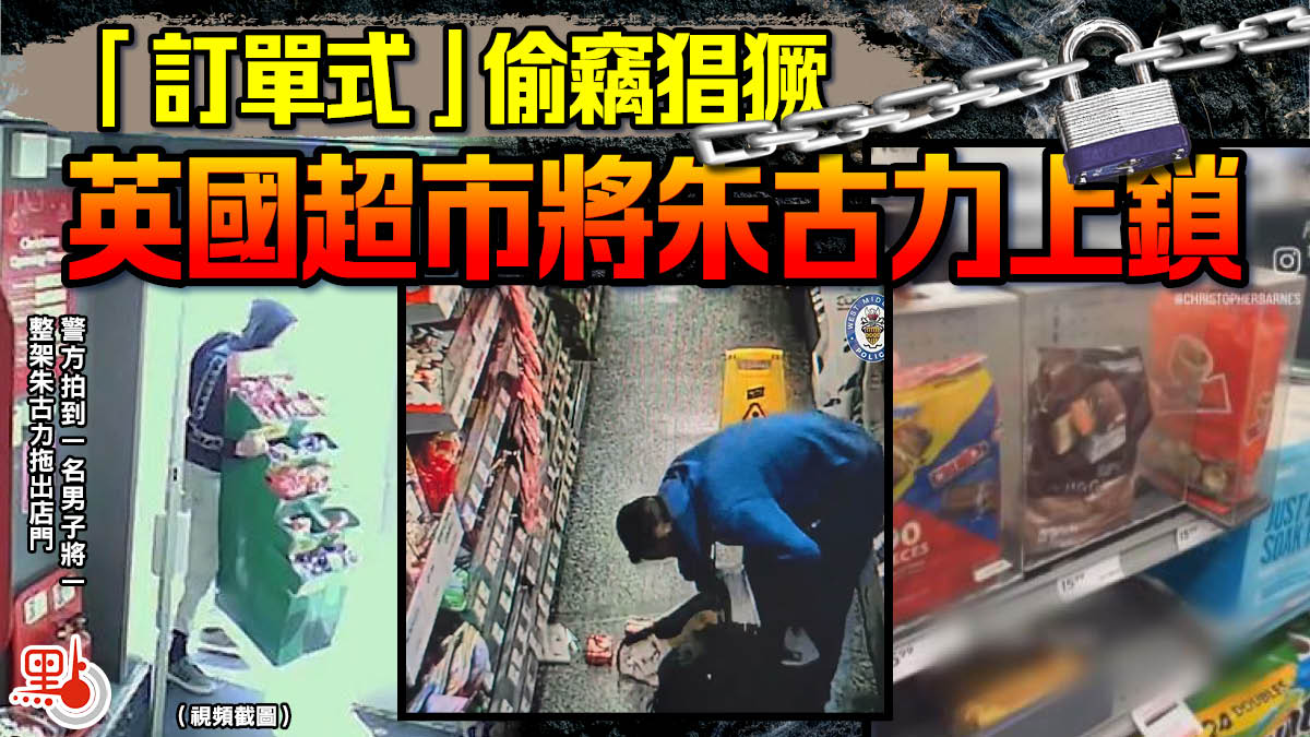 大型超商Sainsbury's超市表示,已開始對常成為盜竊目標的商品加裝防盜盒,倫敦一家門店內,售價2.6英鎊(約25港元)的吉百利牛奶朱古力(Cadbury Dairy Milk)已被上鎖保管。英國便利店協會指出,近期朱古力被盜後會被犯罪分子轉售,已成為慣犯頻繁下手的目標。