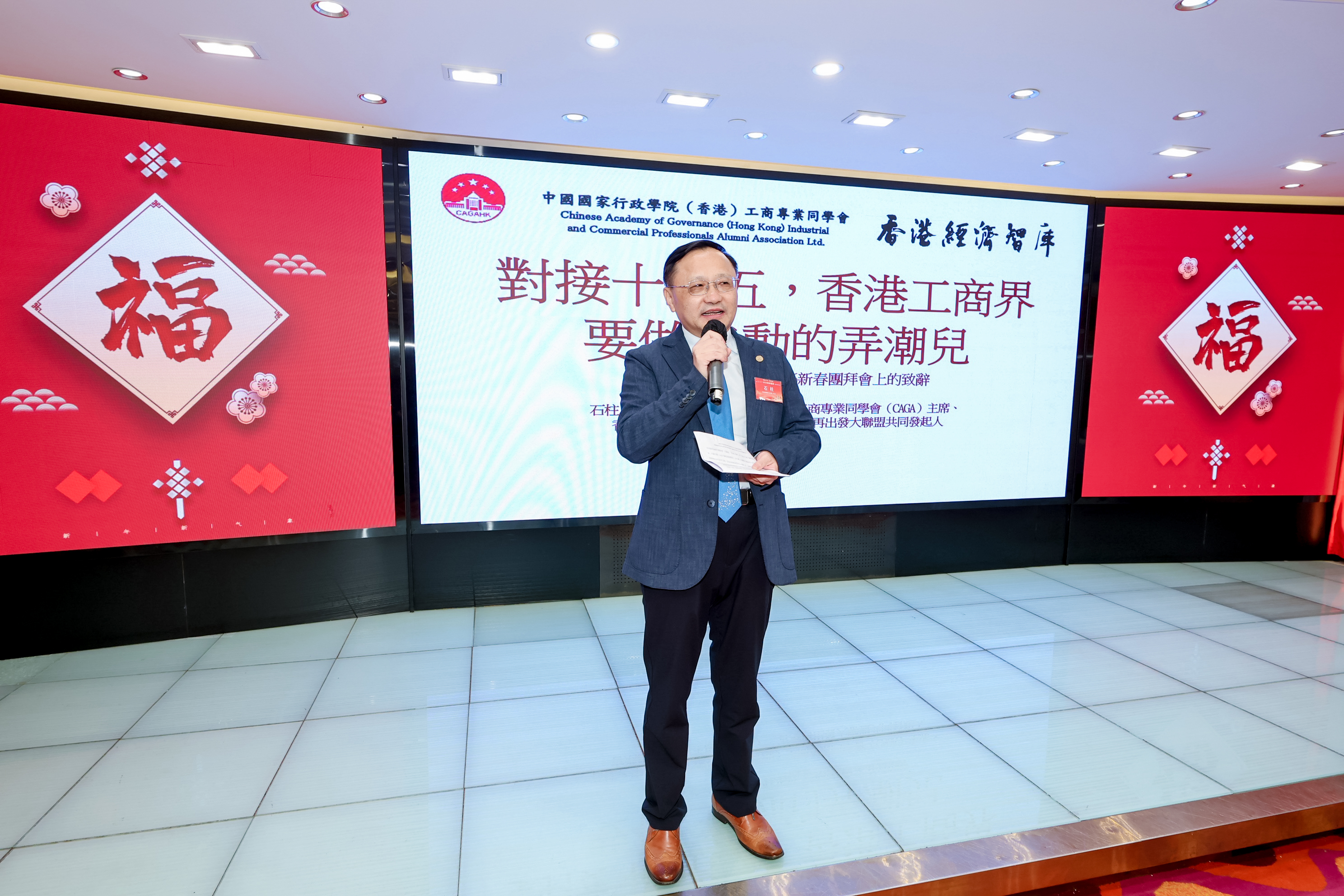 在CAGA和HKEC當天聯合主辦的新春團拜活動中,石柱指出,中國成為世界第一大經濟體是可以預見的。中國的持續崛起,是香港經濟韌性的「壓艙石」,更是香港開拓全球的「超級引擎」。他強調,「十五五」規劃不是擺在書齋的古籍,而是擺在香港工商界面前的「黃金航道」。面對這一歷史機遇,香港工商界要做「主動的弄潮兒」,而非「被動的觀望者」,通過精準對接國家戰略需求,實現自身跨越式發展。