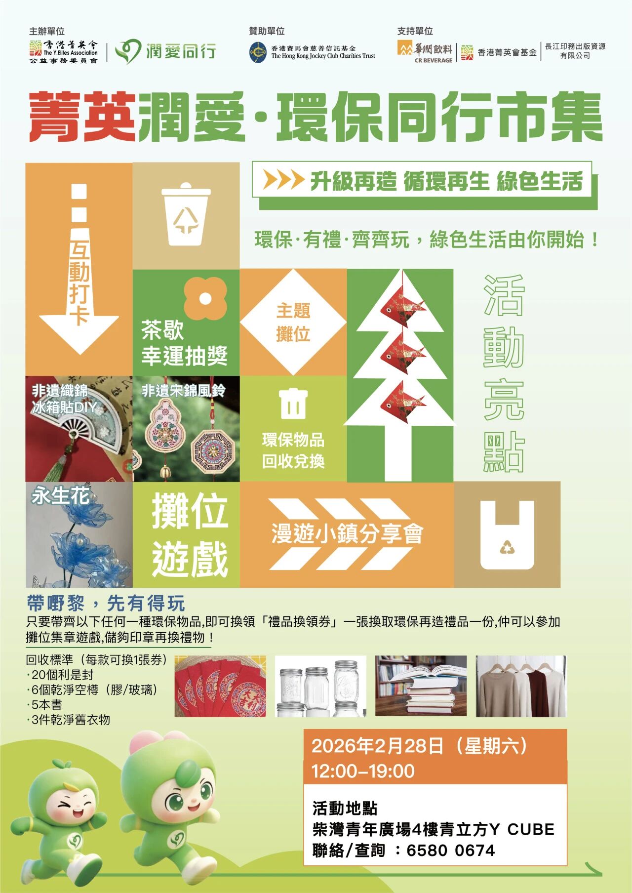 【點新聞報道】由香港菁英會公益事務委員會及潤愛同行主辦、香港賽馬會慈善信託基金贊助的菁英潤愛·環保同行市集將於2月28日於柴灣舉行。一齊來投入綠色生活,邊玩邊學環保,更有機會換取禮物!