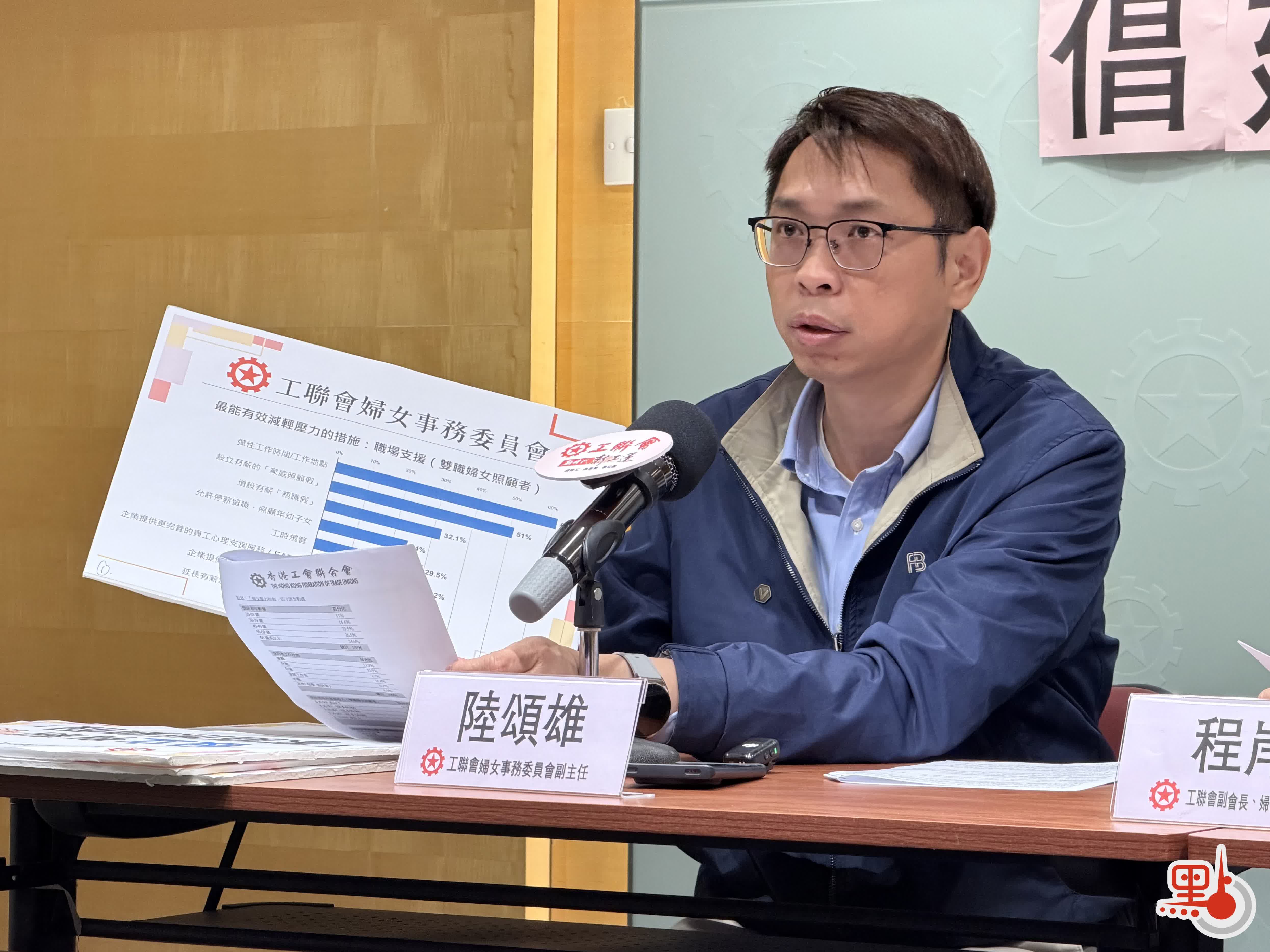 工聯婦委副主任陸頌雄建議建構家庭友善的就業環境。他指出,受訪雙職婦女中,分別有逾六成和五成認為「彈性工作時間/工作地點」及設立有薪的「家庭照顧假」是最有效降低壓力的措施;亦有逾四成希望「增加資助的長者日間照護中心名額」,讓長者在她們上班期間能獲妥善照顧;此外,56.4%受訪雙職婦女認為「為家庭照顧者提供現金津貼或稅務減免」會是最有效支援。