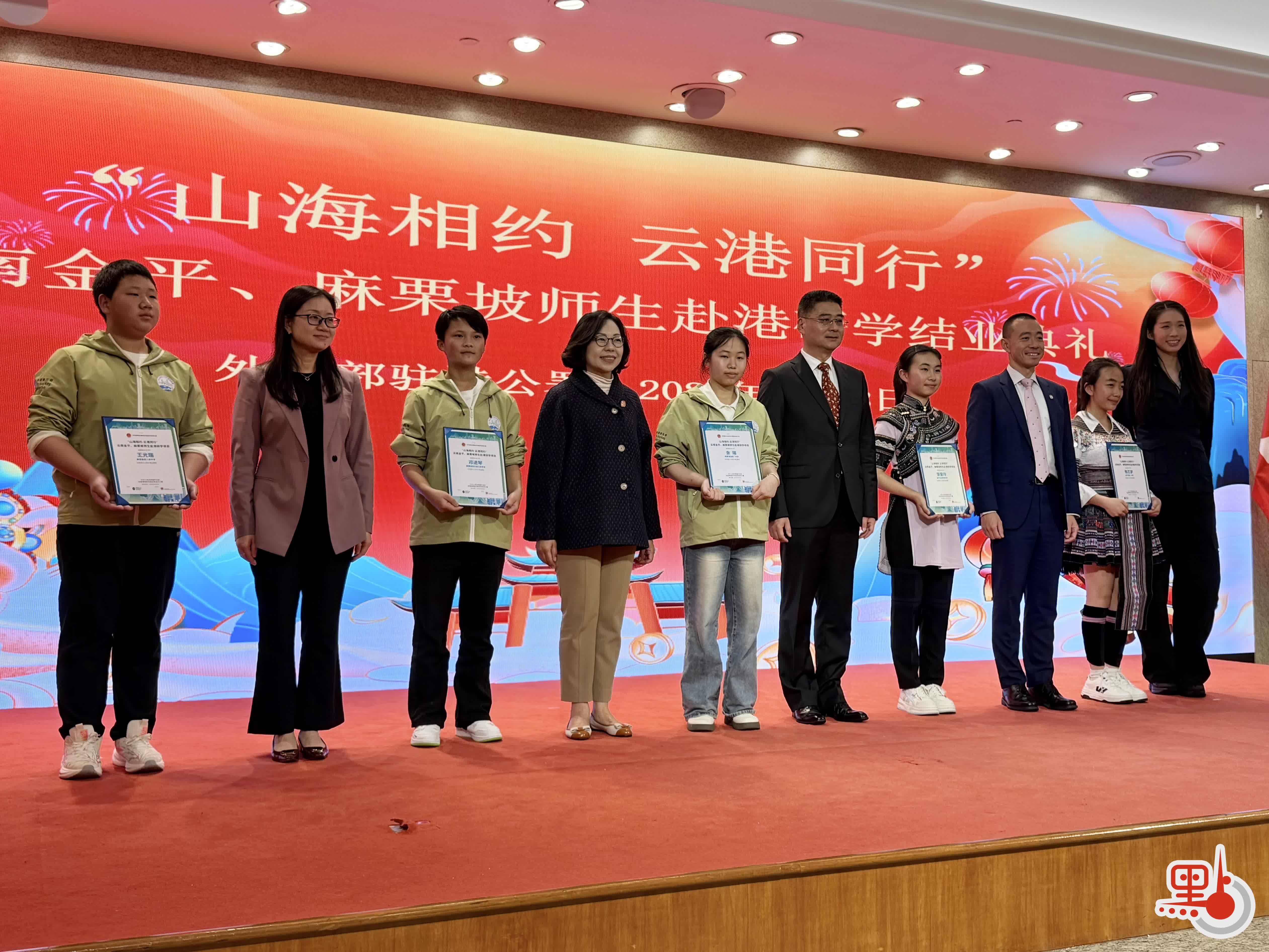 【點新聞報道】外交部駐港特派員公署於2月23日至3月1日舉辦「山海相約 雲港同行」雲南金平、麻慄坡師生赴港研學項目,項目今日(28日)舉辦結業典禮。外交公署副特派員花有、民政及青年事務局局長麥美娟、中央政府駐港聯絡辦青工部副部長萬寧、立法會議員江旻憓等嘉賓出席典禮。