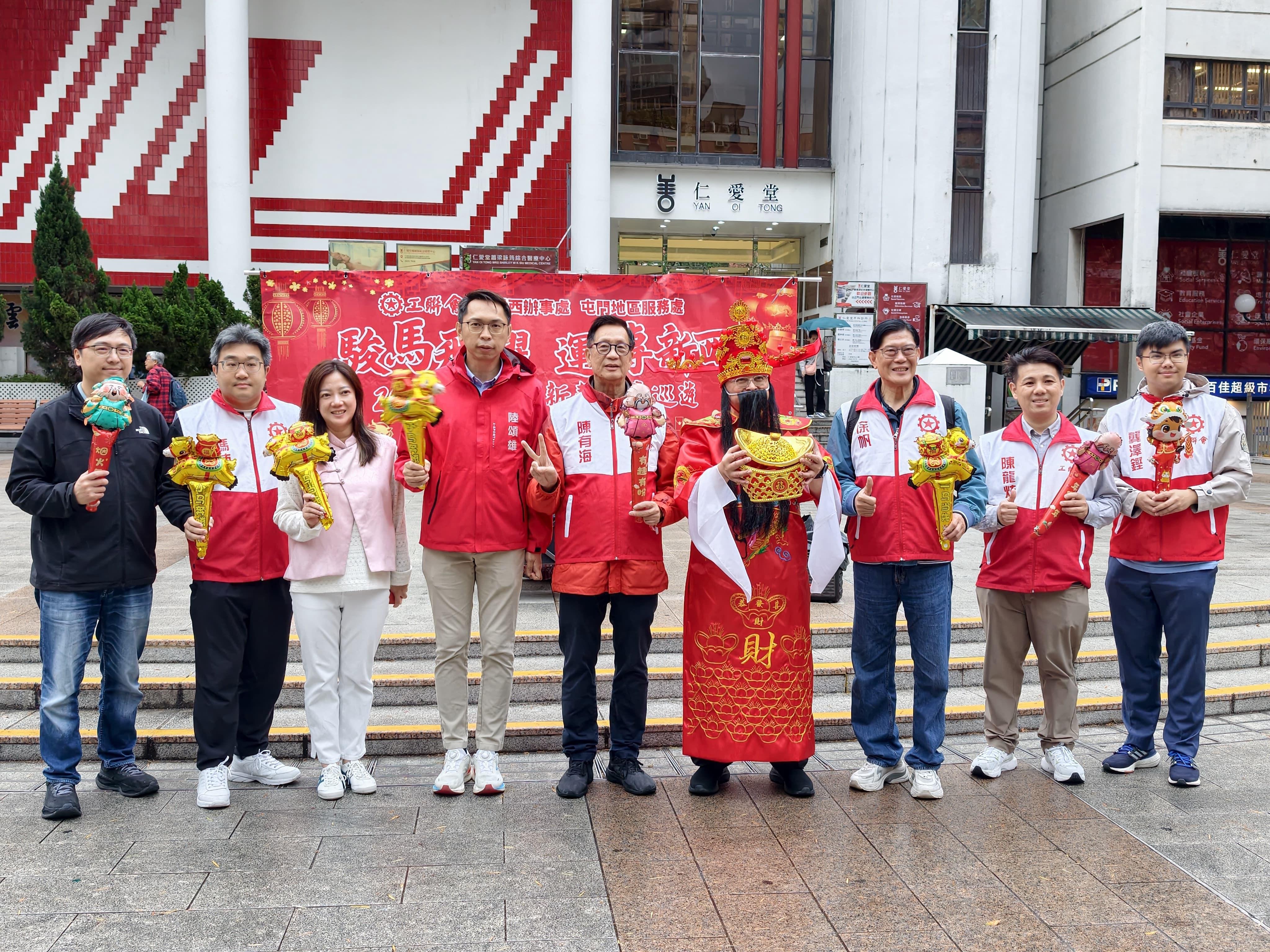 工聯會政務副主陸頌雄致詞,向街坊拜年,表示要為社區帶來正能量,祝大家馬年行好運,馬上大吉,馬上健康,人人有工開。剛剛發表的財政預算案表示,政府會大力投資北部都會區高增值產業,相信能為區內帶來優質就業,藉此增加市民收入。亦期待再培訓局升格及技能提升局,政府亦表示投放5000萬元推動全民AI學習,市民終身學習適應不同行業發展,融入國家發展大局,掌握新技術,把握發展機遇。