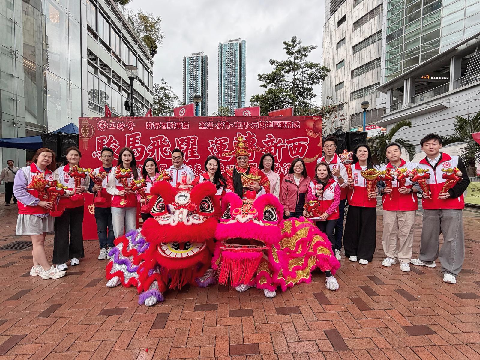 【點新聞報道】工聯會新界西團隊今日(28日)在荃灣、葵青、元朗、屯門區舉辦「駿馬飛耀運轉新西」新春花車巡遊活動。花車活動現場氣氛熱烈,亦吸引不少市民駐足拿取新年元寶公仔和財神氣球,共同感受新年的喜悅。
