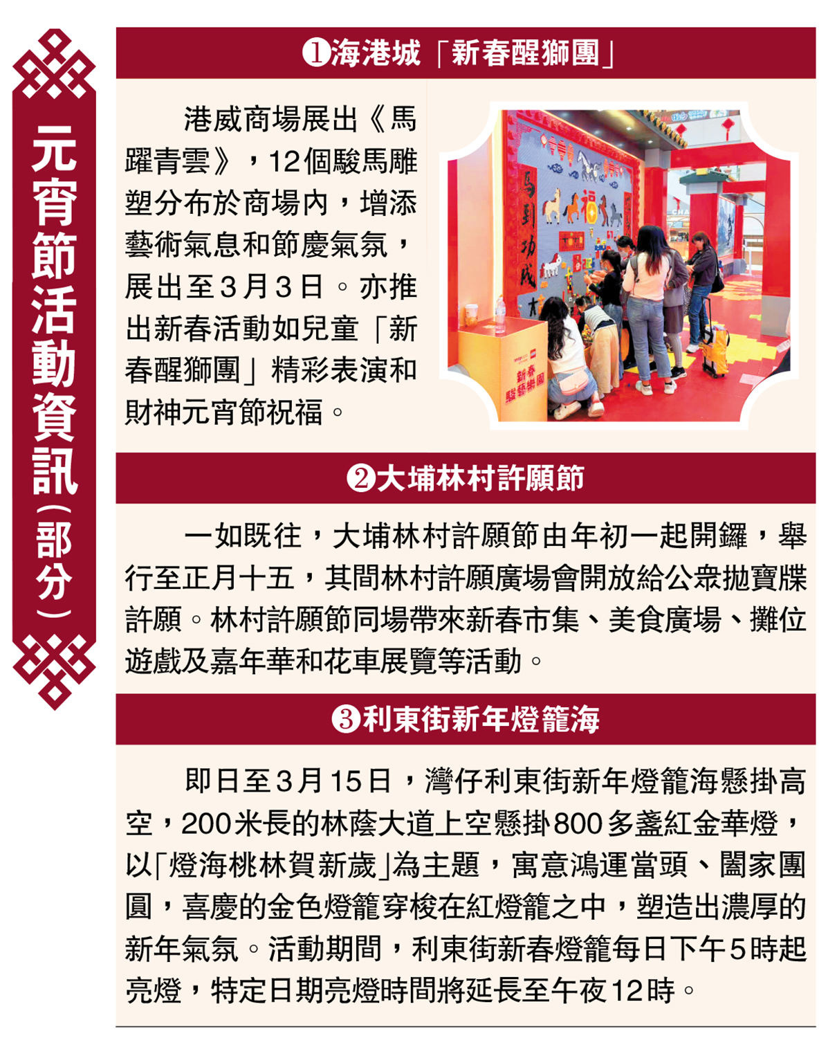 元宵節繽紛活動共慶團圓 品味香港傳統習俗
