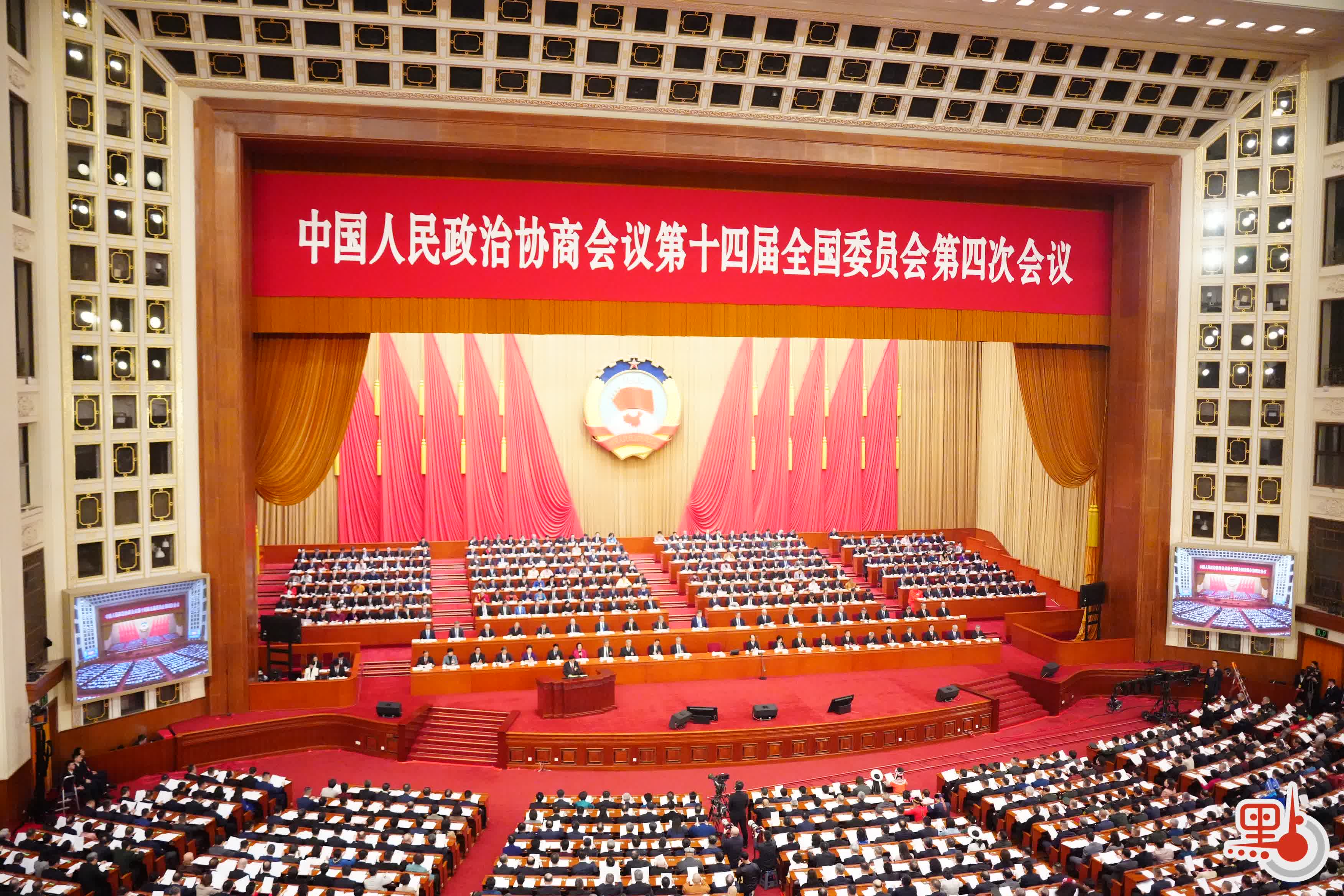 今日下午3時,全國政協十四屆四次會議在人民大會堂開幕,全體起立,高唱中華人民共和國國歌。