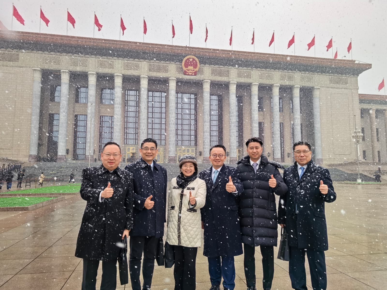 港區全國人大代表、自由黨副主席陳曉峰和港區全國人大代表、立法會議員陳仲尼紛紛對萬里雪飄的美景讚不絕口,更表示,前來參會多次,今次見到落雪之景屬實難得。