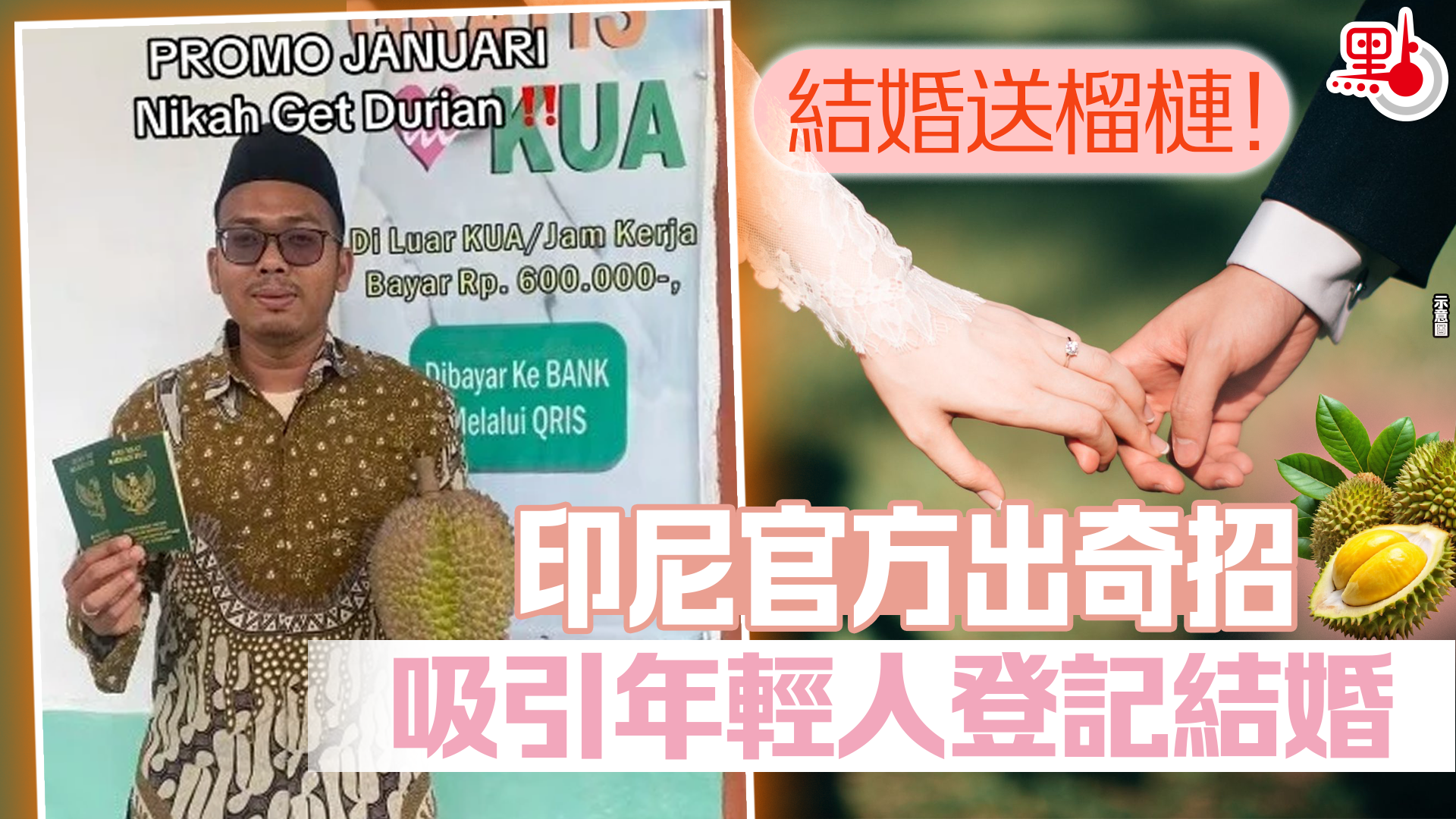 結婚送榴槤!印尼官方出奇招吸引年輕人登記結婚