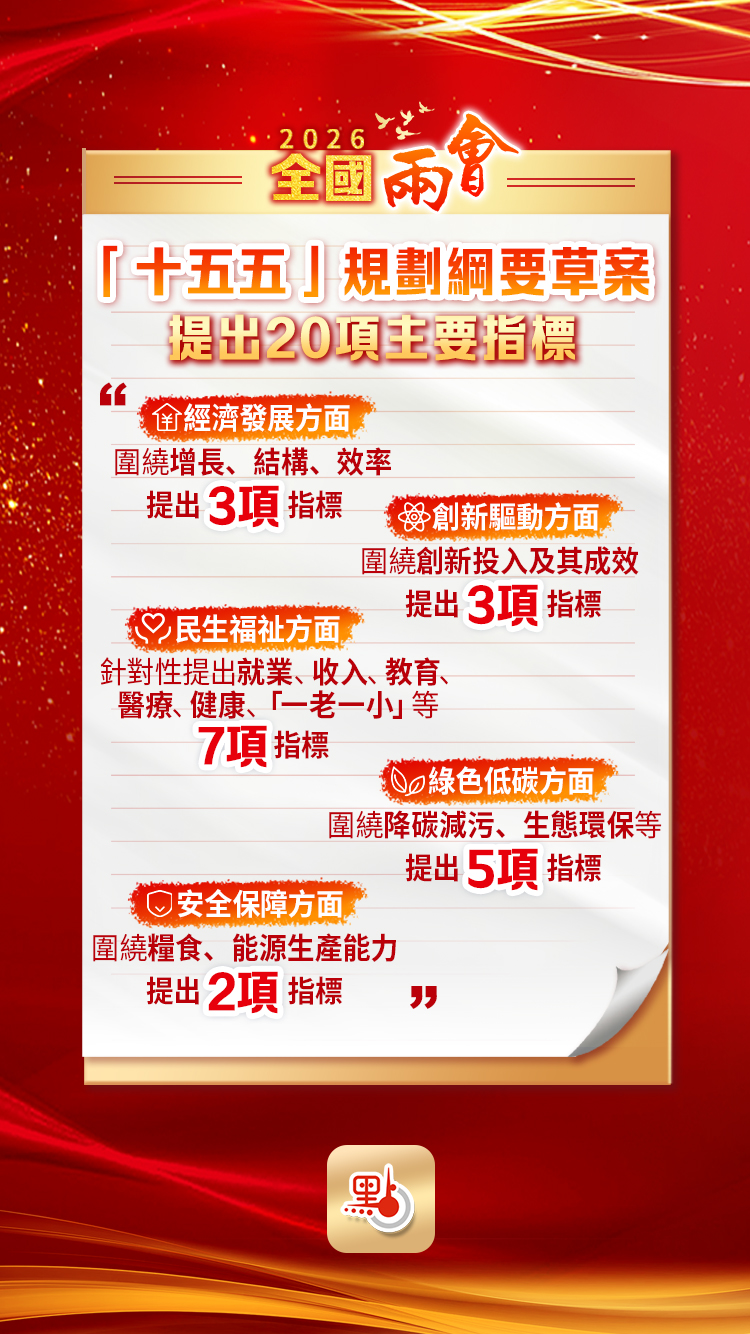 兩會|「十五五」規劃綱要草案提出20項主要指標