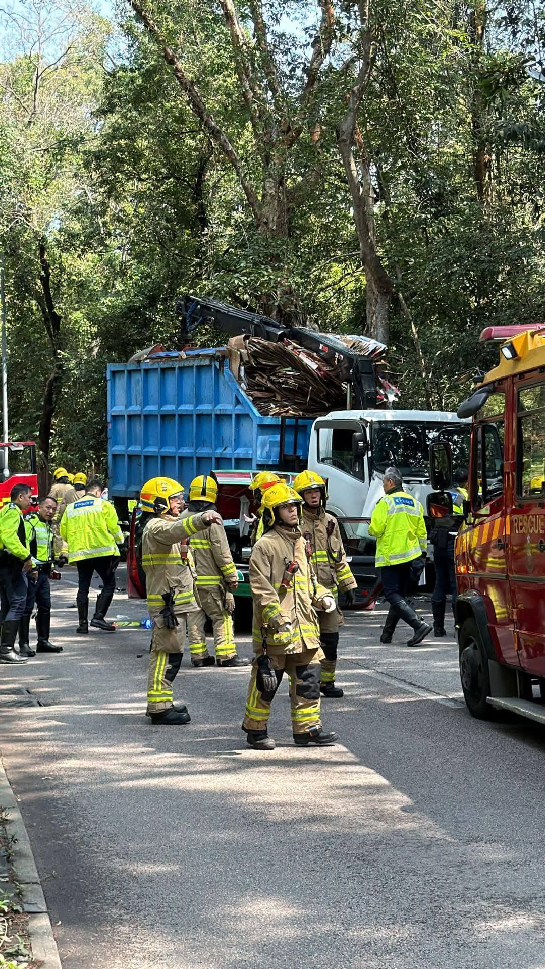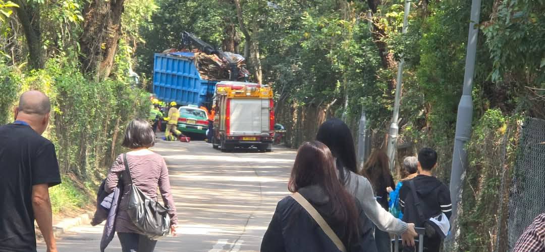 (有片)粉錦公路綠的對撼夾斗車 司機乘客昏迷送院雙亡