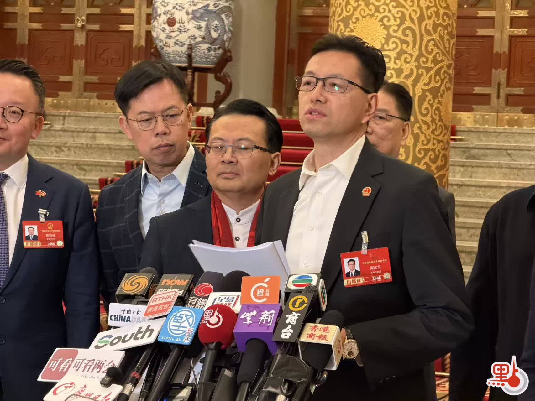 港區全國人大代表團副團長吳秋北則分享兩個感受,第一,政府工作報告具有高度戰略意義,可提振信心,是謀劃長遠發展、做好高質量發展的核心根基;報告提到深化改革,在統籌發展和安全的同時,做好綠色可持續發展。第二,政府工作報告圍繞民生問題,如促就業、促增收,夯實民生基礎,加碼公共服務,回應教育、醫療、養老等民生需求,並優化住房生育等保障,提振消費等。他形容政府工作報告是「有溫度的報告」,將全力支持。