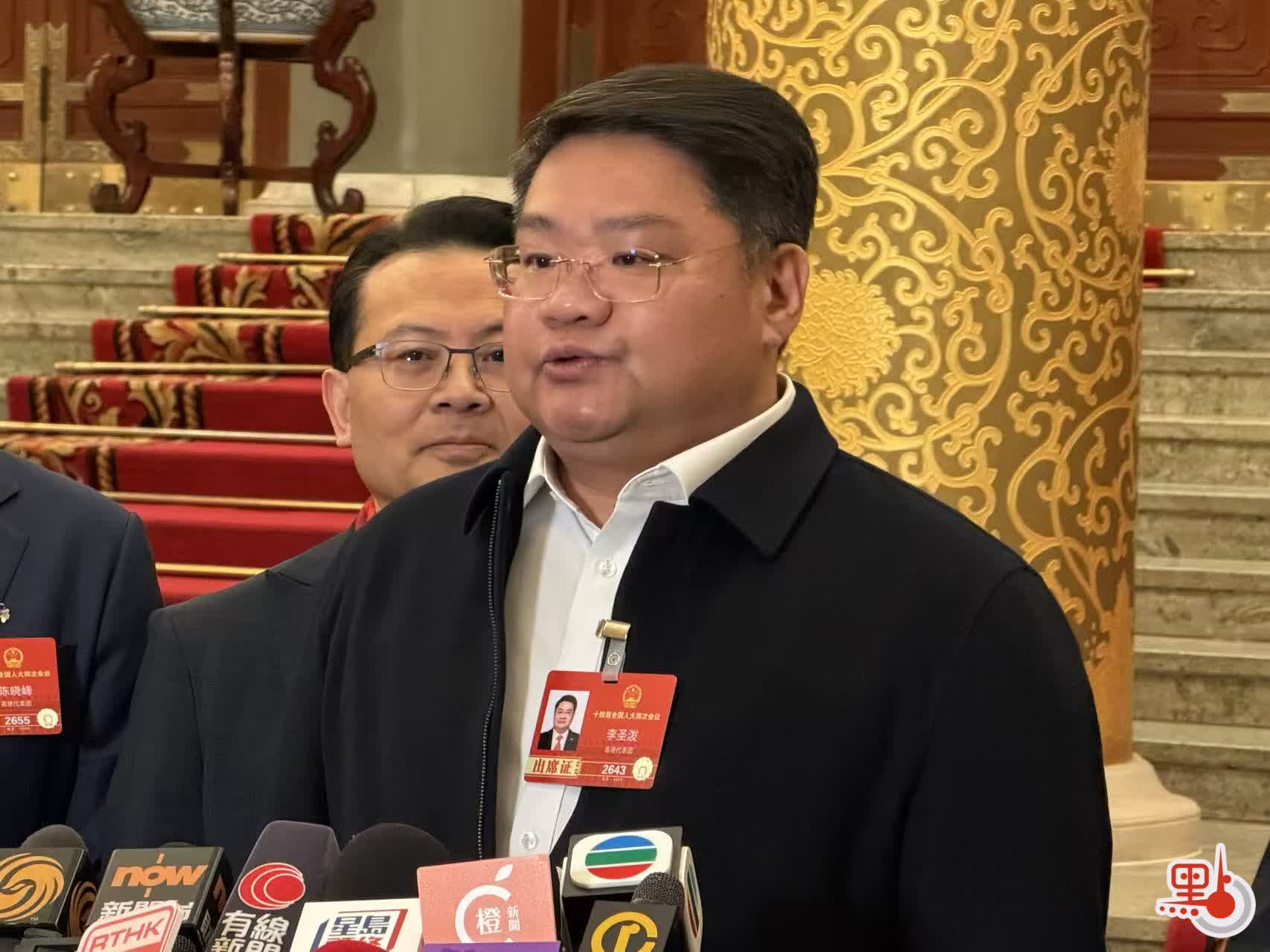 李聖潑表示,能夠在人民大會堂現場聆聽政府工作報告,見證國家過去的豐碩成就,既令人相當鼓舞,亦催人昂首奮進。他提到,「十五五」規劃綱要草案繪就出國家未來發展的宏偉藍圖,香港社會各界要主動對接國家「十五五」規劃,抱着時不我待的態度,鞏固提升、全力建設「四中心一高地」,同時將北部都會區打造成為與內地融合發展的先進前沿地帶,推動香港有更好發展,也為強國建設、民族復興偉業作出新的更大貢獻。