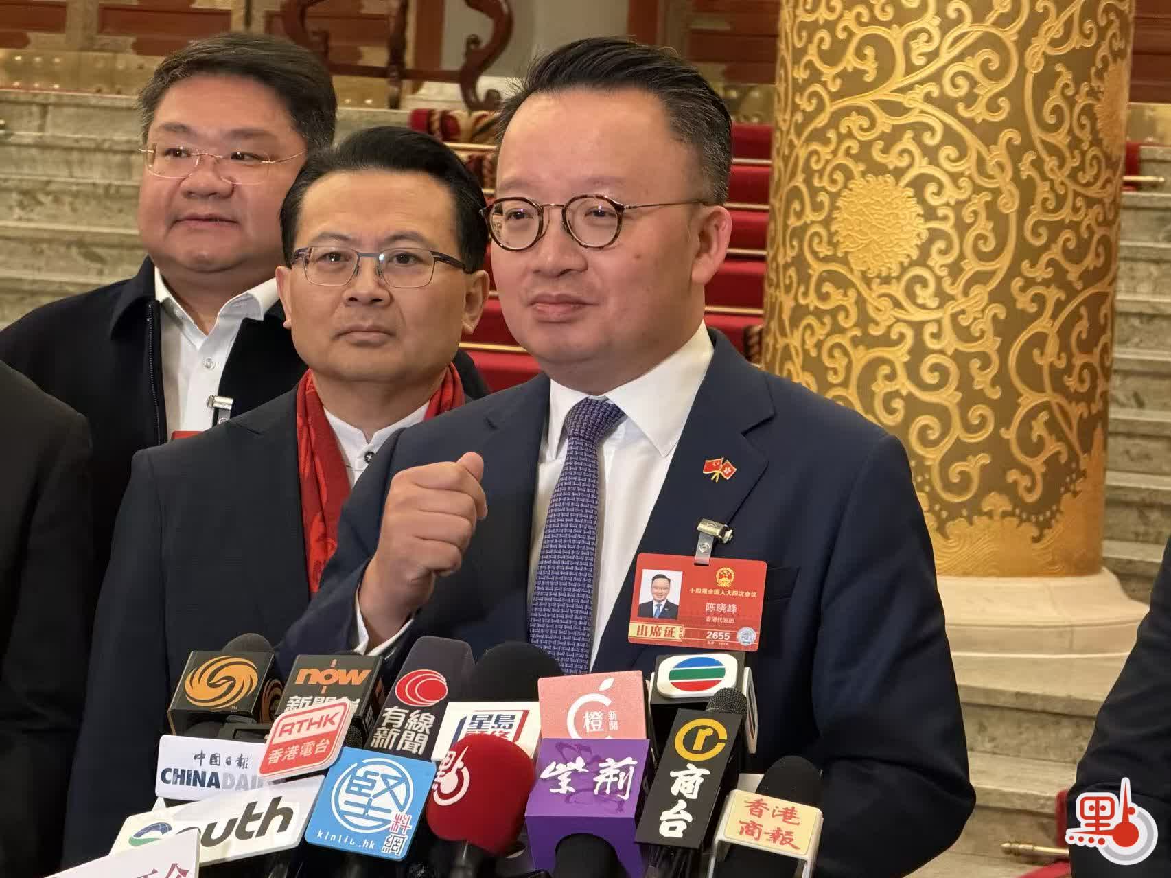港區全國人大代表陳曉峰特別指出,「十五五」規劃草案提及香港有「五個樞紐,七大中心」,可令更多力量貢獻香港。他亦特別分享「專精特新」四字,認為各界各領域都要多思考,如何貢獻社會。
