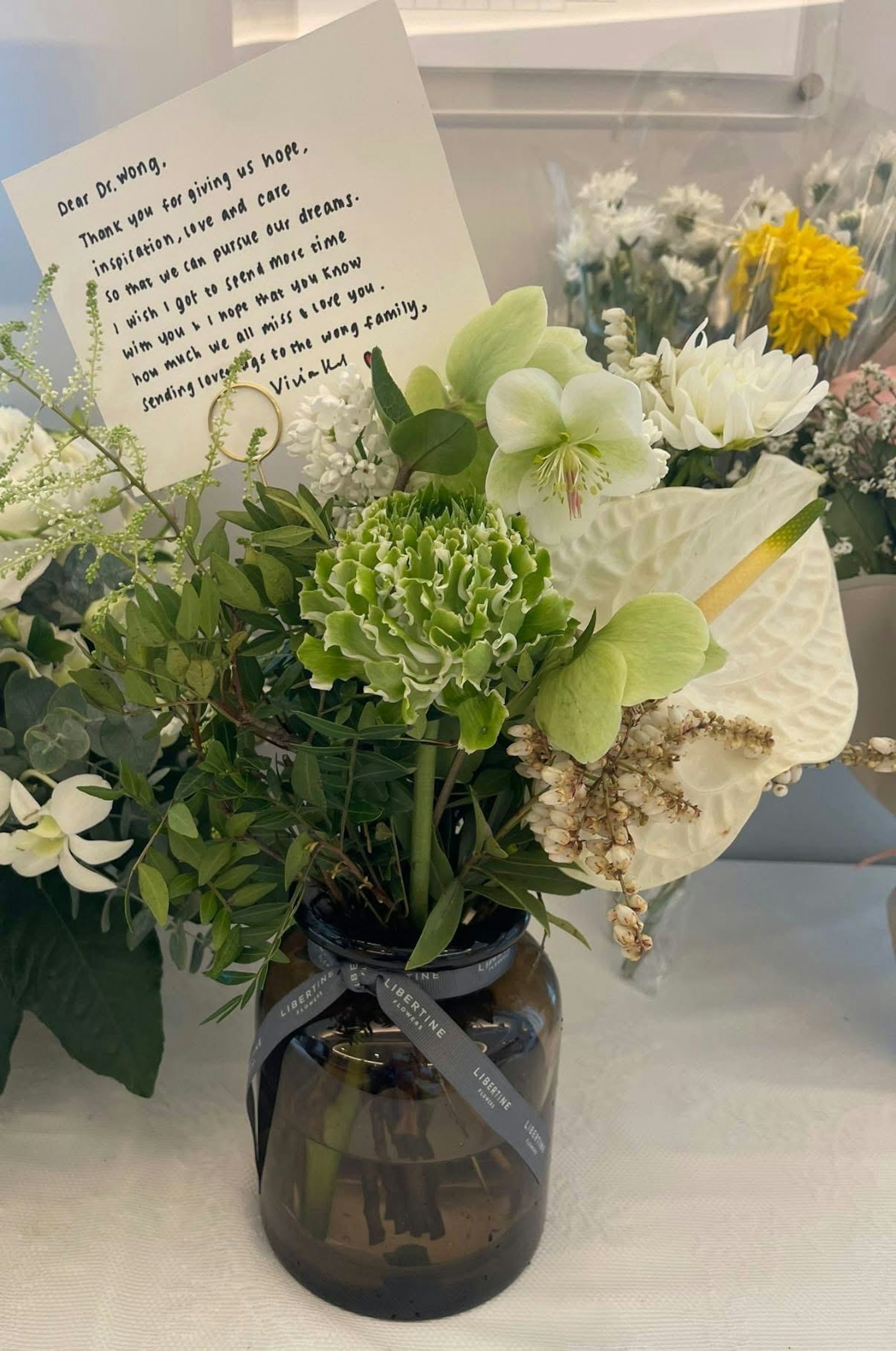 江旻憓表示,感謝黃醫生為大家帶來希望、鼓舞、關愛和照料,令人們可以繼續追夢。她還寫道,希望能和黃醫生多待一會兒,「讓你知道我們是多麼想念你」,並向黃醫生的家人致以深切慰問。